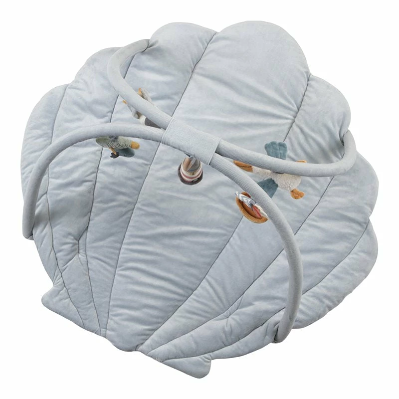 Encourage exploration. Your little one will be challenged to move, reach and grasp with this captivating activity play mat. The super-soft mat has the shape of a shell and channels a harbour-inspired aesthetic with 5 different hanging soft toys that will keep your baby engaged. There is a seagull, a pelican, a lighthouse, a sailboat and a fishy duo.