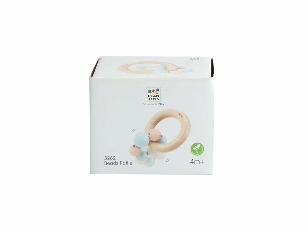 This pastel coloured and natural wood rattle is in a ring shape, so it’s super easy for little fingers to grasp and shake. Six pastel coloured beads safely hang from the wooden ring, so that when your little one grabs and shakes this wooden rattle, it gives a rewarding shaking sound.