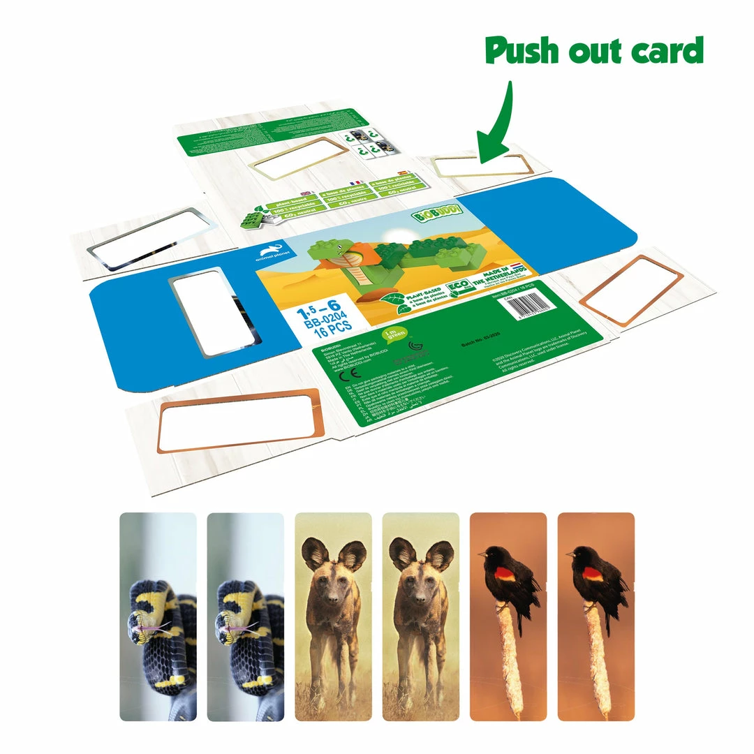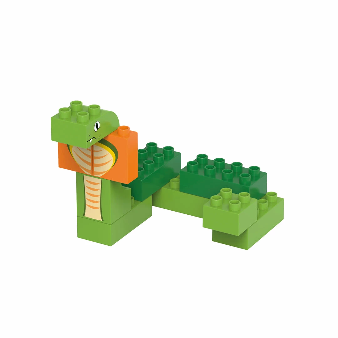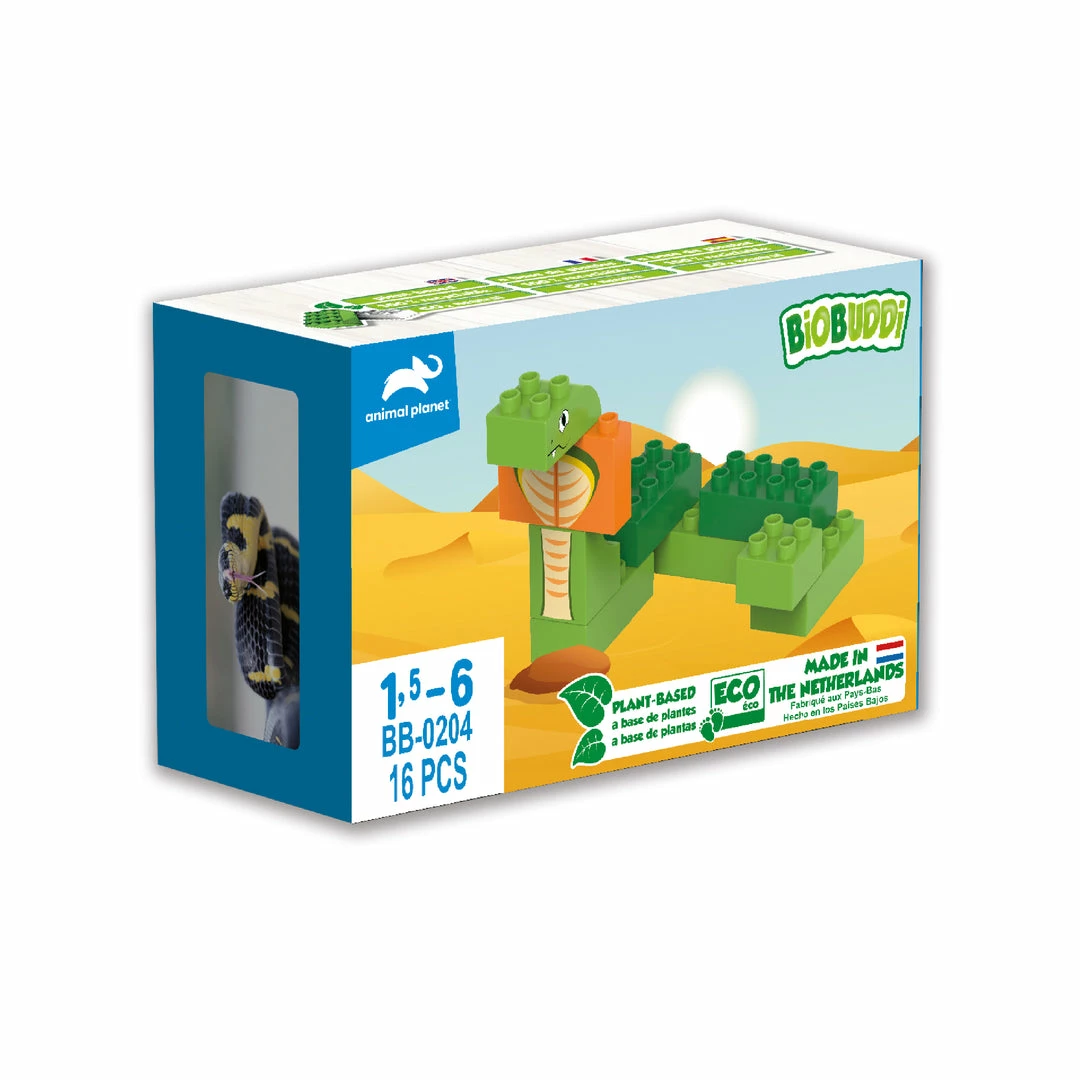 The Animal planet Cobra play set is made for children from 1.5 to 6 years old. This fun play set can be used to let your son or daughter learn in a playful way about all kinds of animals that roam the earth. The play set consists of 10 building blocks with multiple prints and 6 expression cards. Use these building blocks to build your own Animal planet Cobra together with your son or daughter. Print the brand new express cards from the 100% recyclable packaging and play an educational memory game with your little one.