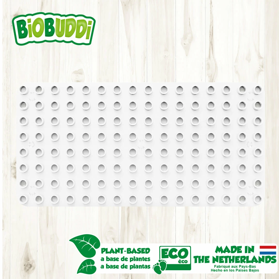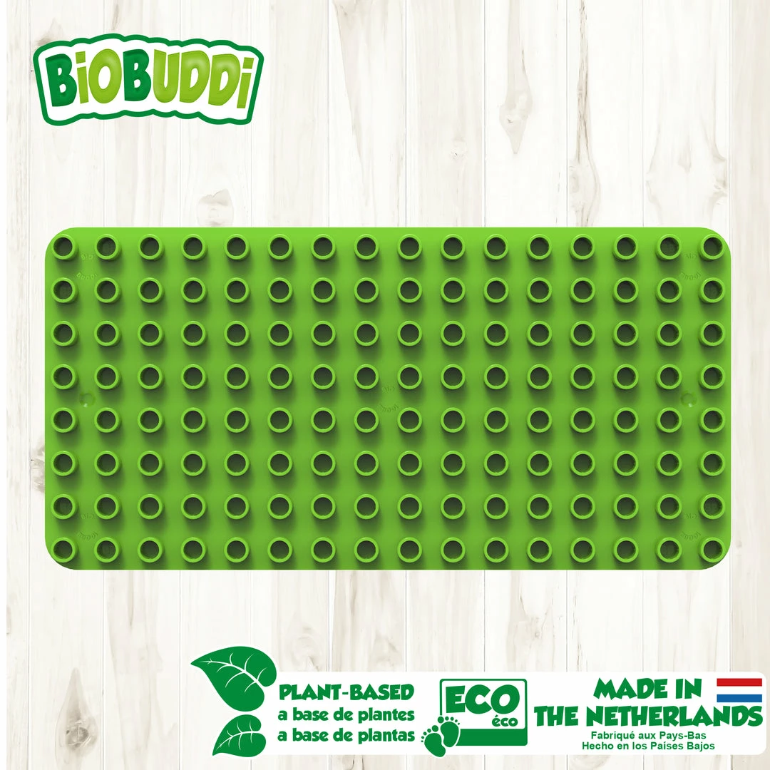 Whether you’re building a house, a shed, a castle or a stadium you’ll always need something to build it on. BiOBUDDi offers the foundation to any creation you can imagine. Expand your collection with baseplates for more possibilities and give your creations a place to stand, sit or lie on. The environment friendly and biobased material is a durable foundation to any structure so go ahead and build!