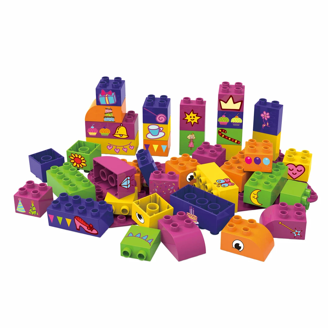 Contains 39 coloured building blocks.