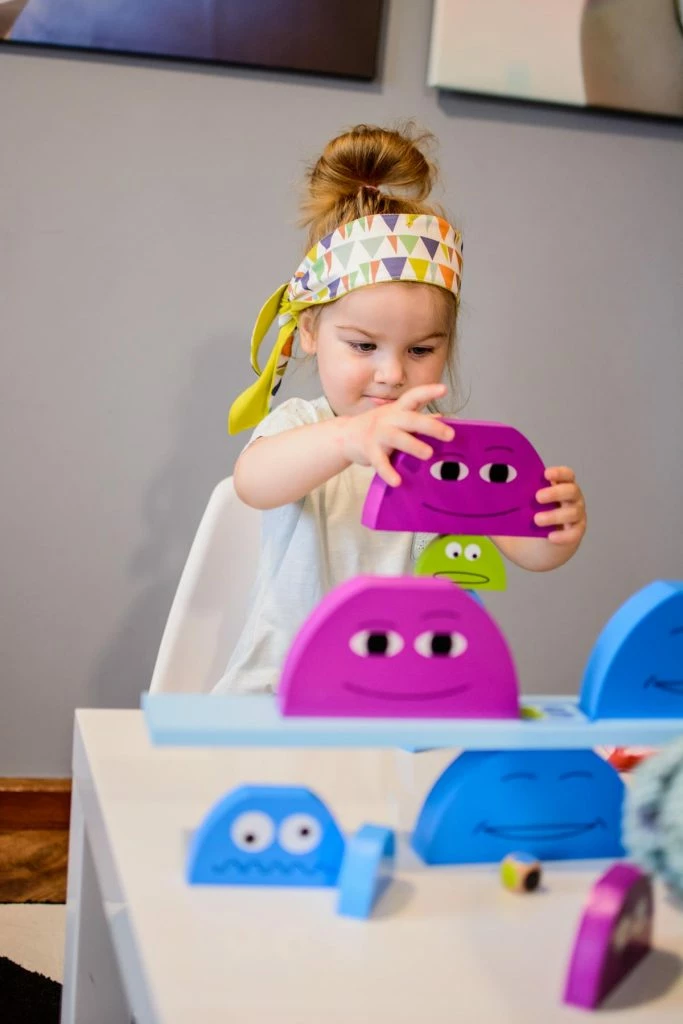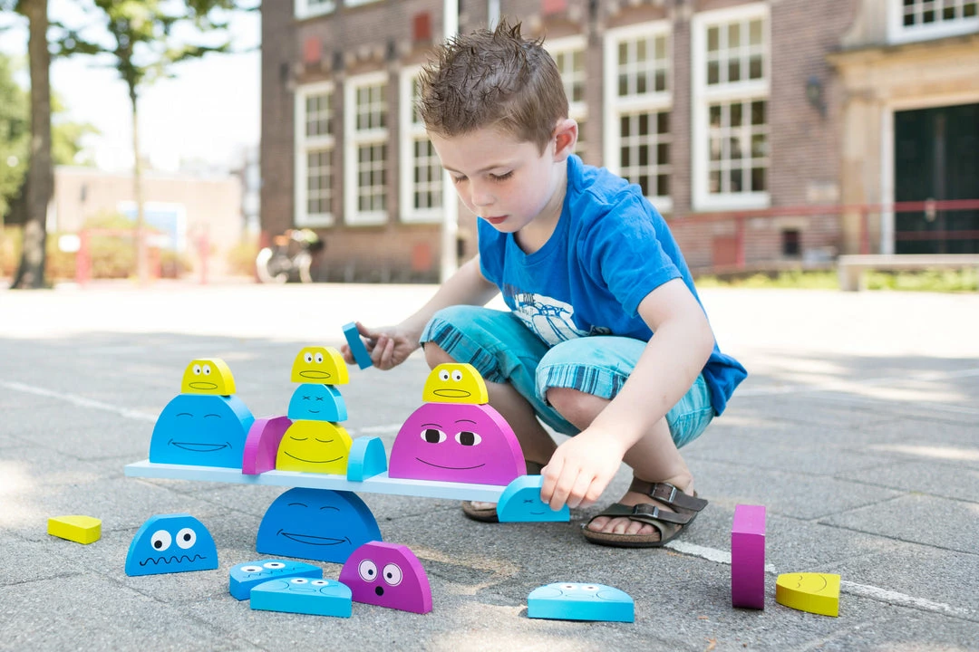 Throw the dice and add a buddy of the same colour to the balance. But watch out! Don’t bring the seesaw out of balance, because if a buddy slips off, you lose!
