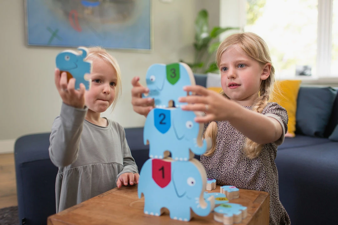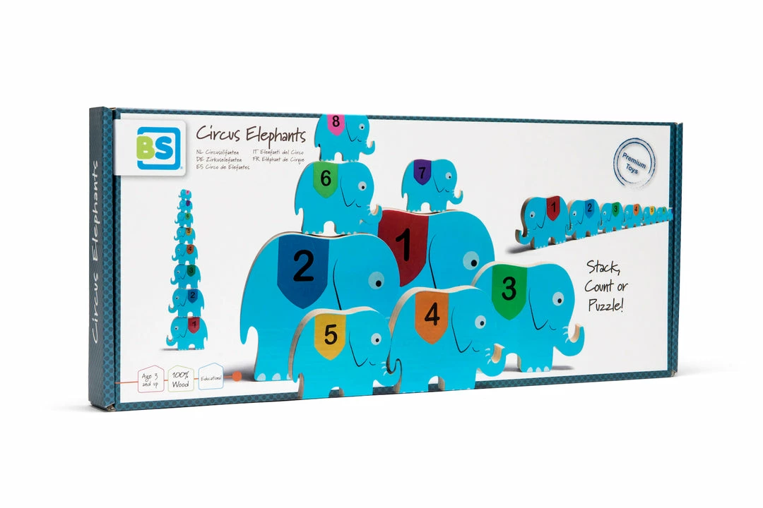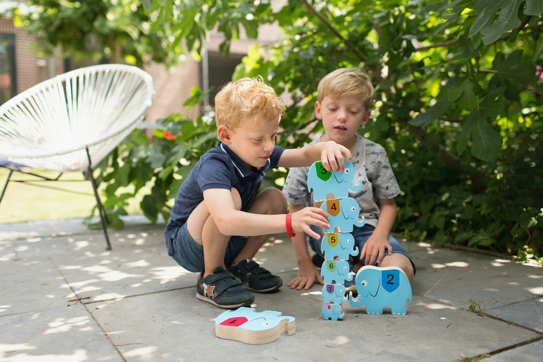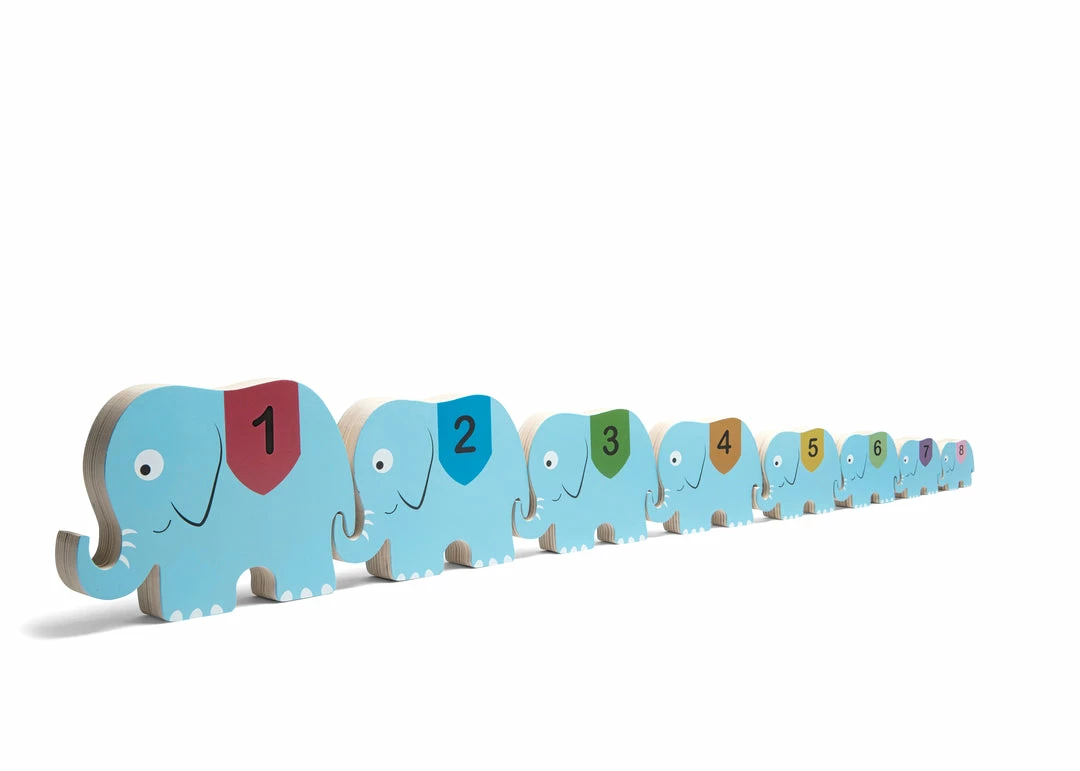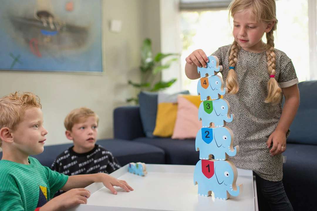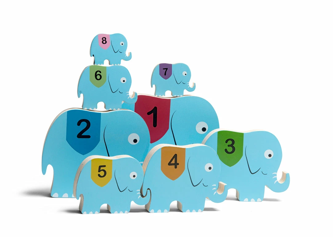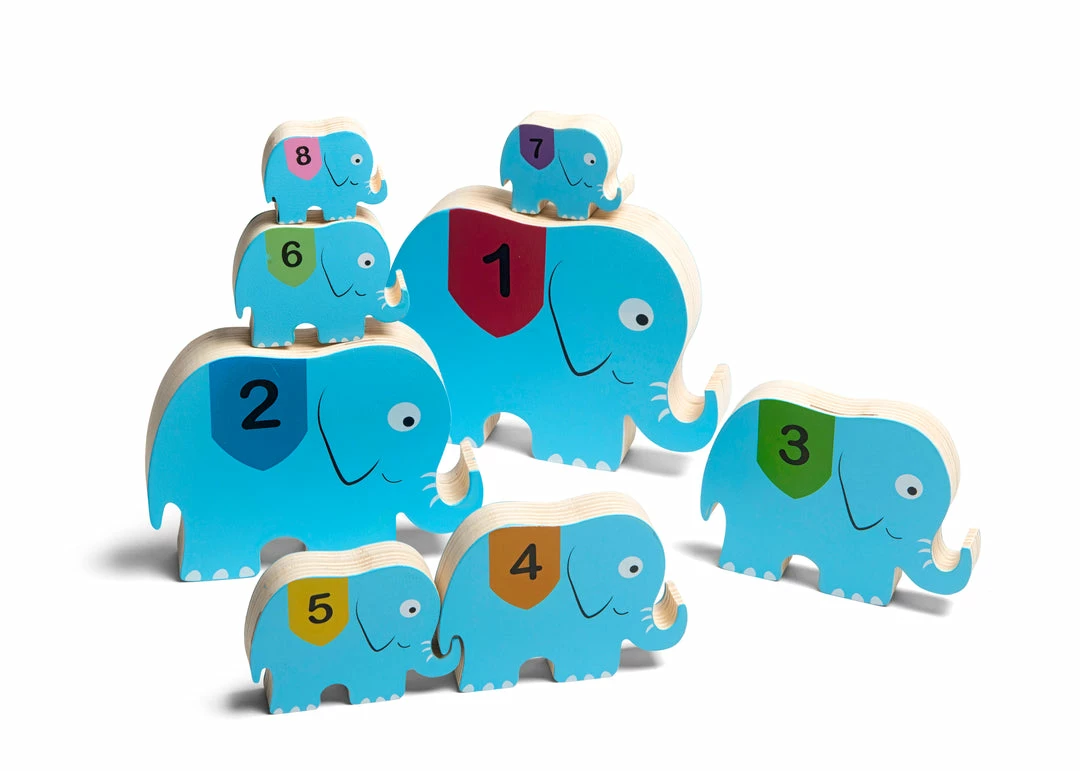 With these elephants, kids learn the correct sequence of numbers and the recognition of colours. They can build high towers with these happy elephants. Which acrobatic tricks can you do with these elephants? These elephants will be very nice decoration for kids rooms and are strong enough for many ours of fun!