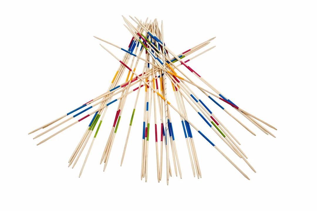 This game is made of very large bamboo poles. The natural material makes sure the game has an extra twist because of the irregular shape of the poles. Can you pick up the poles, without moving the other ones?