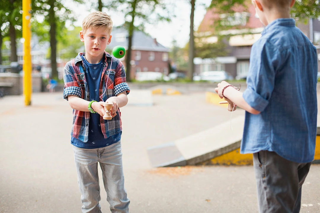 The wooden ball is attached to a string. Throw and try to catch the wooden ball with the spike in different ways and practice your coolest moves! This is a centuries-old game in a new design!