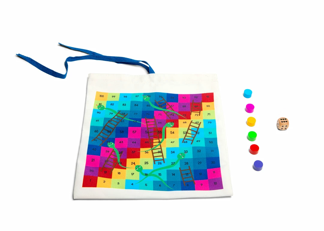 The most ideal combination of two games in one cotton bag! You can play Ludo and the snakes & ladder game, where you need to climb high if you are lucky or slide down if you are unlucky.