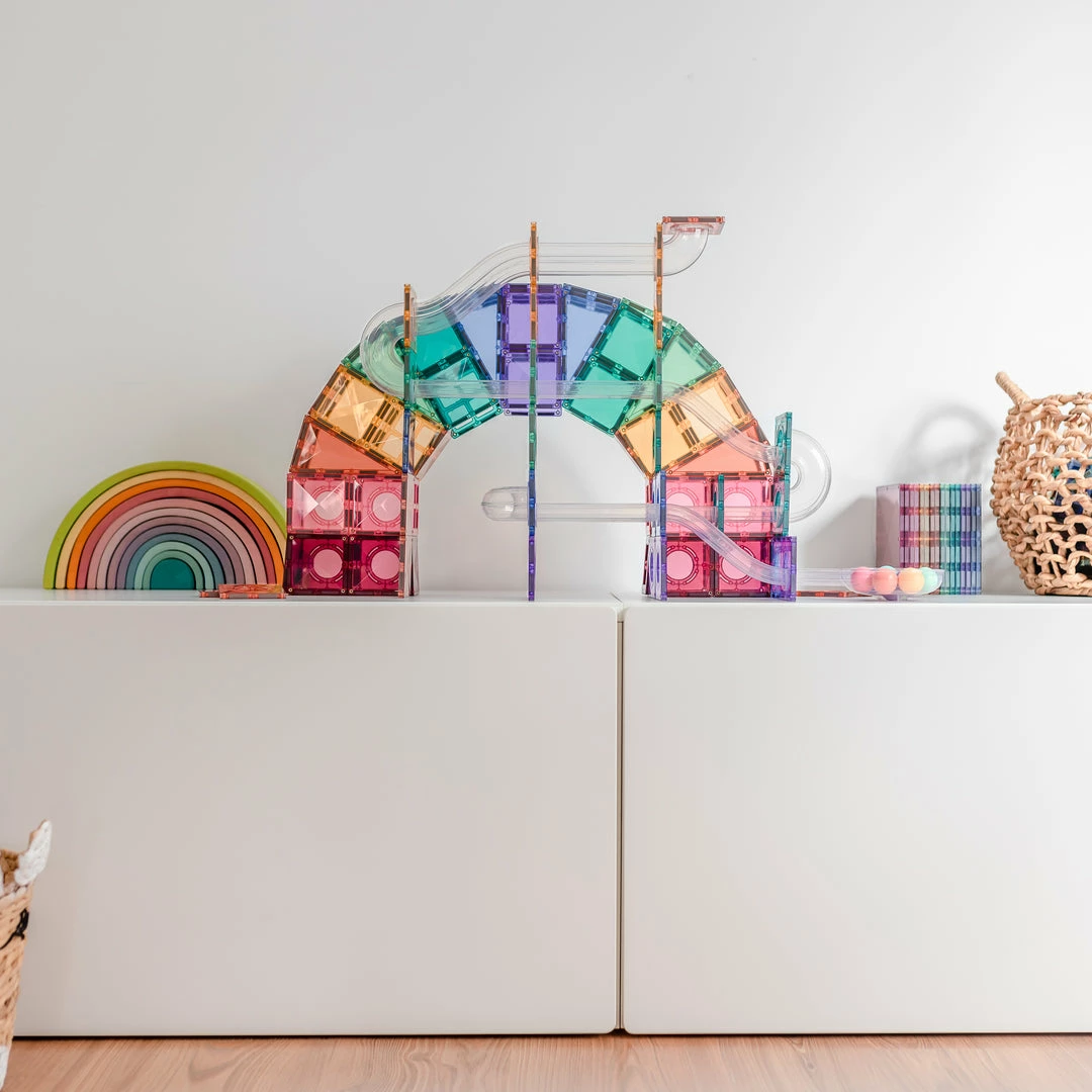 Take your pastel Connetix play to whirling, twirling new heights with our Pastel Ball Run Pack!