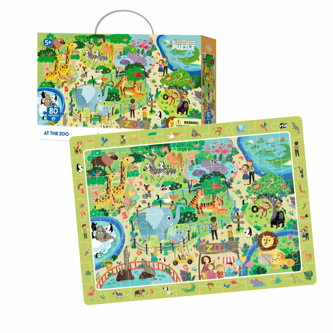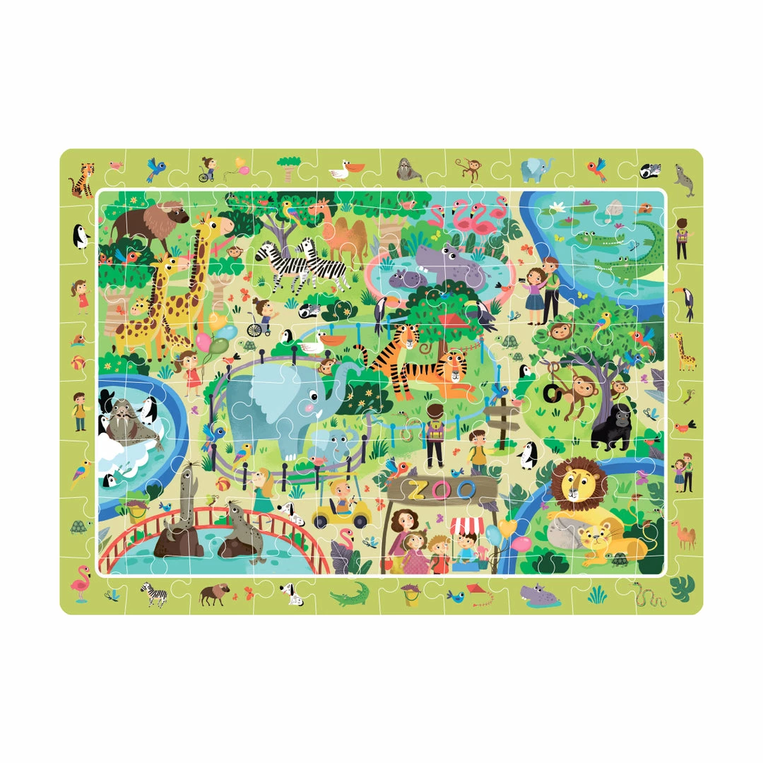 Puzzle with a frame on which all the animals are made. The child will be able not only to collect the puzzle, but also to train attention, looking for each animal on the frame and in the picture.