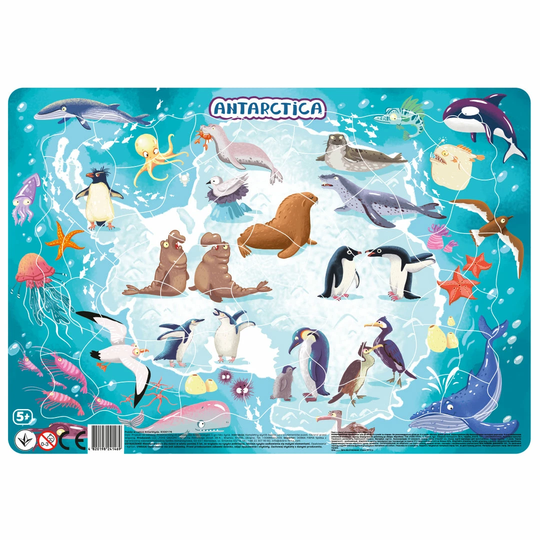 Puzzle with a frame made of very dense cardboard, white background with the contours of the elements to make it easier for the child to fold the puzzle.