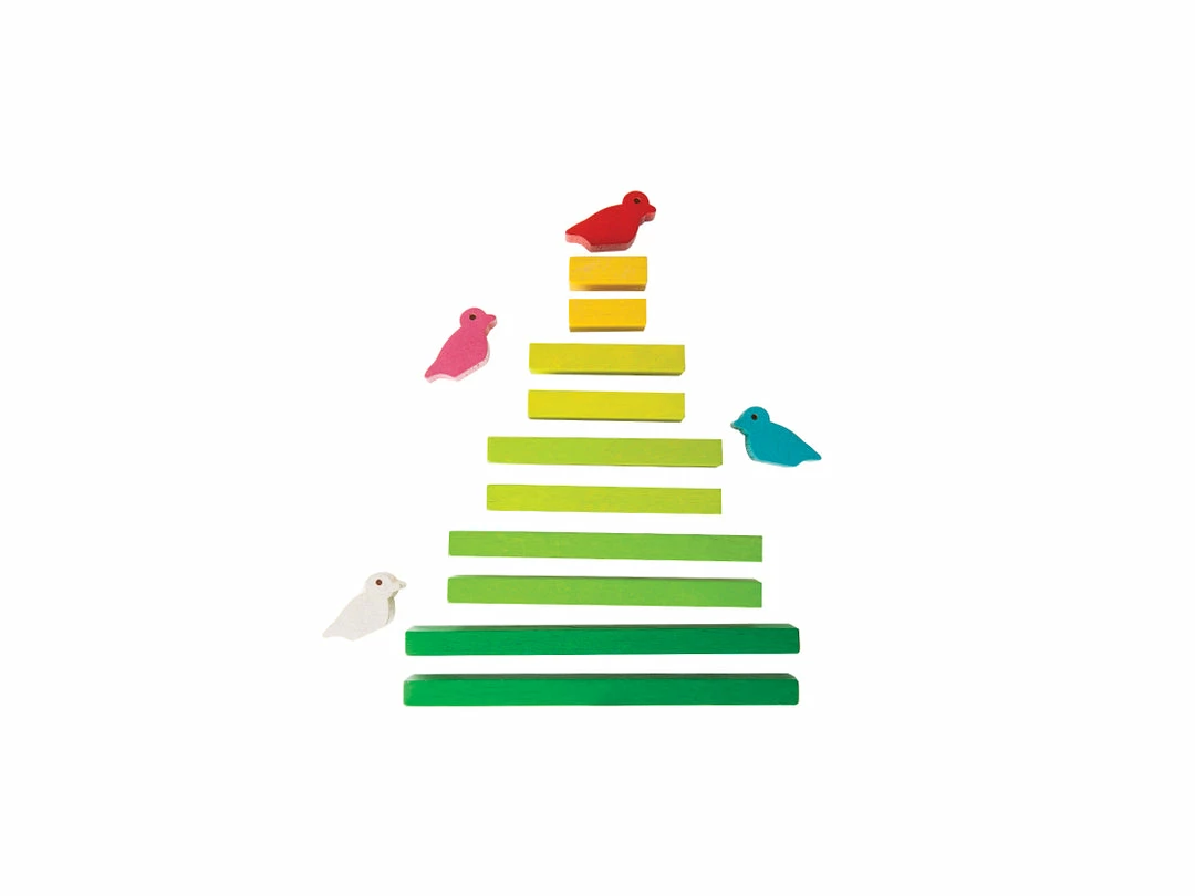 INCLUDES: The Balancing Tree consists of 6 birds and 11 wooden segments (branches) of different size and colour.