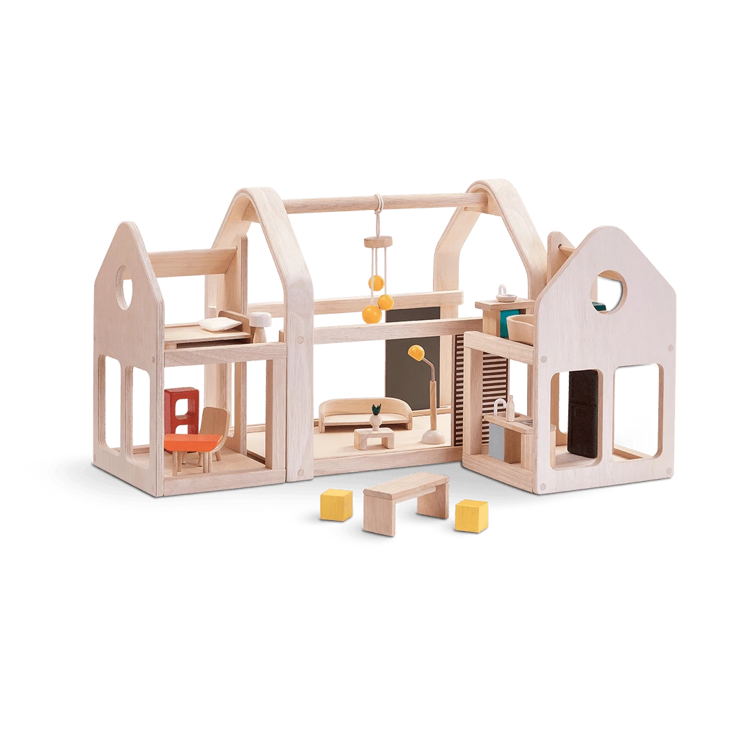 Design your own space with this unique compact dollhouse! The dollhouse is portable for carrying around and fully assembled.