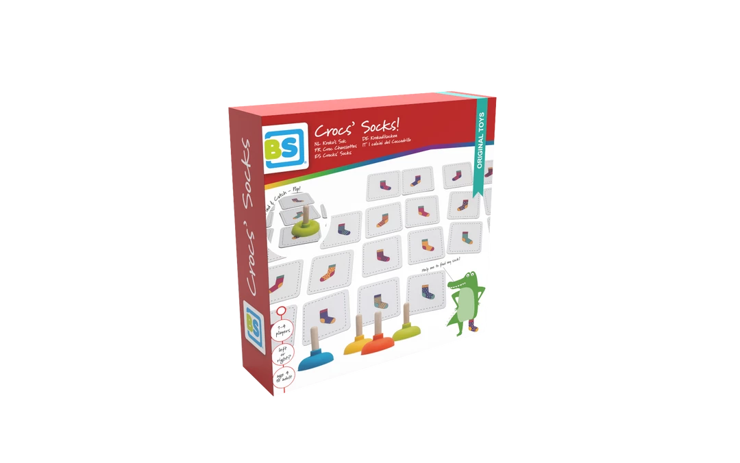 Oh oh.. the crocodile is a bit confused! He is looking for his socks, but he cannot find a matching pari. Be quick and make sure to be the first to find his beautiful pair of socks. Flip a card and find the missing sock of the croc. Catch the sock with your plumber and find as many socks as possible. But be careful, does the croc need his left or his right sock?