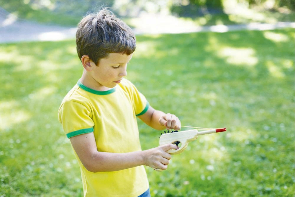Shooting rubber bands has never been as fun as it is with this wooden rubber band gun.