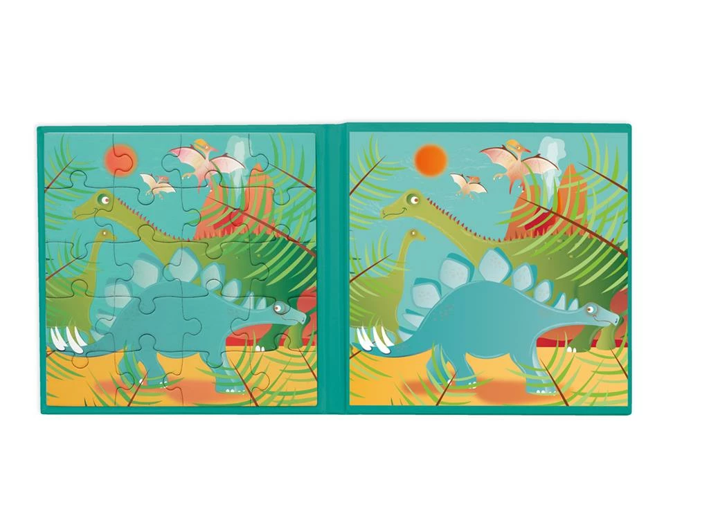 The perfect puzzles on the go! This fold-out book contains 2 puzzles with 20 pieces each. Whether in the car or at a restaurant, the puzzle pieces will stick to the book. No pieces are lost. Each puzzle is accompanied by a helpful image of the completed puzzle. Suitable for children aged 3 and up.