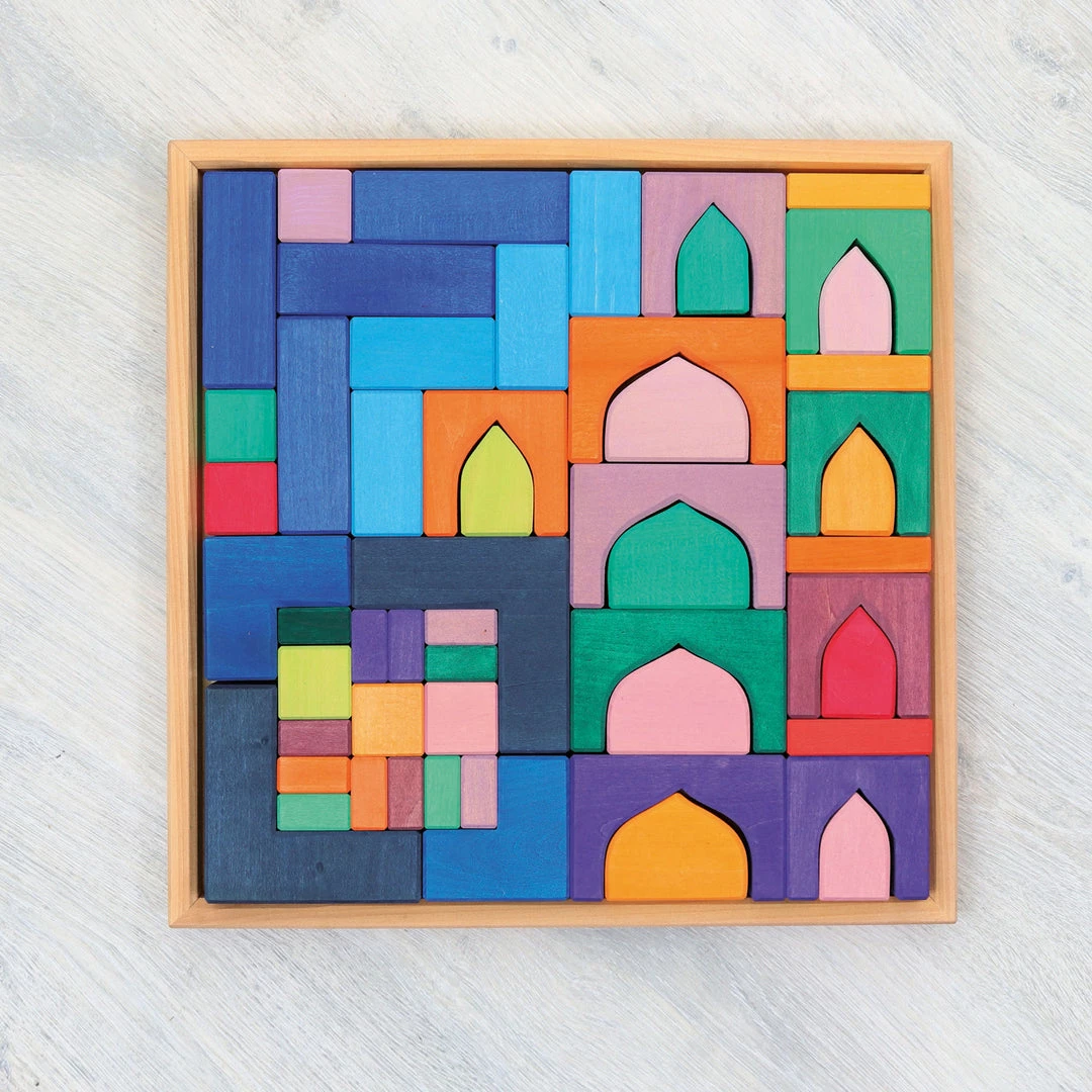 Experience the world of 1001 nights! Even younger children will be fascinated by the intense colours and beautifully formed elements. As the children get older, they will create more and more detailed palaces.