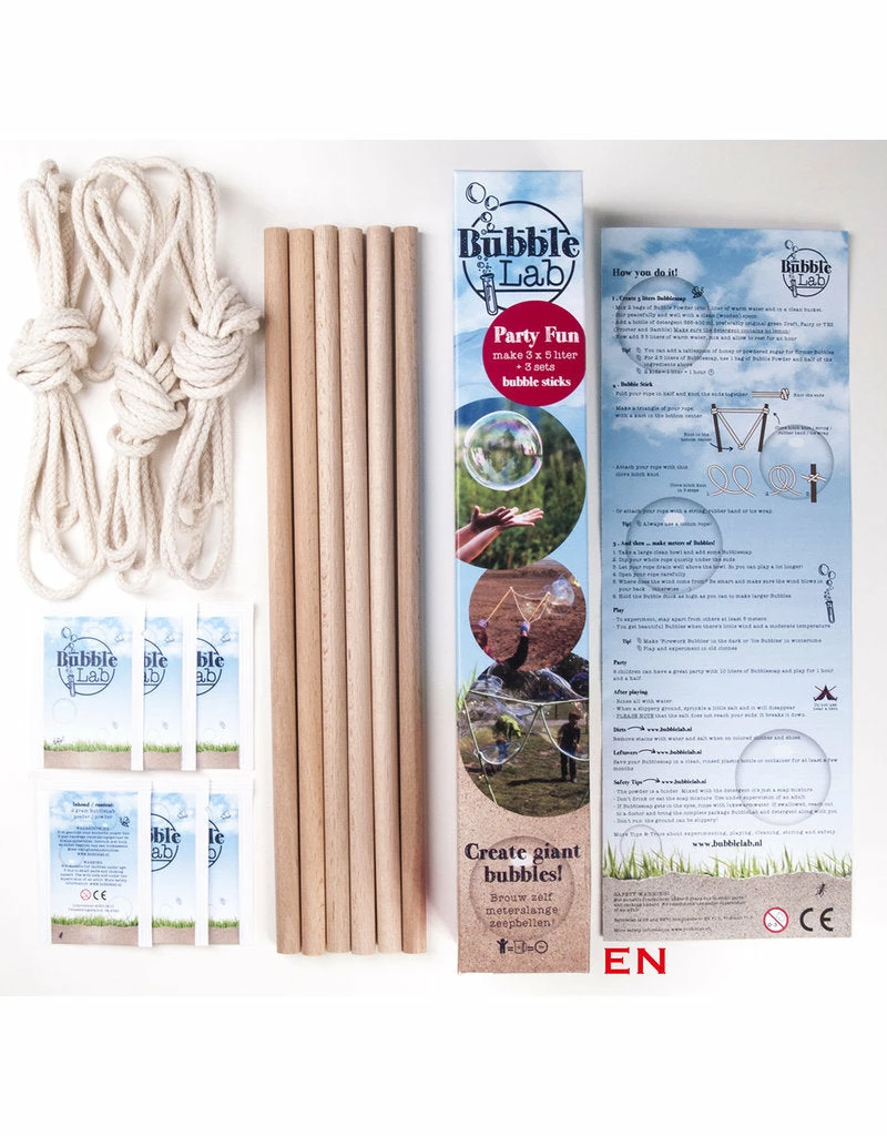 - 6 tubes with BubbleLab powder to make 15 litres of Bubblesoap