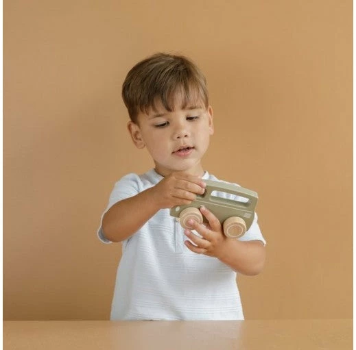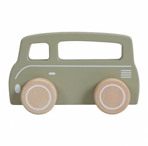 In a beautiful olive colour, this Little Dutch van happily drives around with its solid wooden wheels. He has two more boyfriends: a car and a sports car. Also nice as an accessory in the nursery or children’s room.
