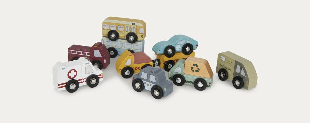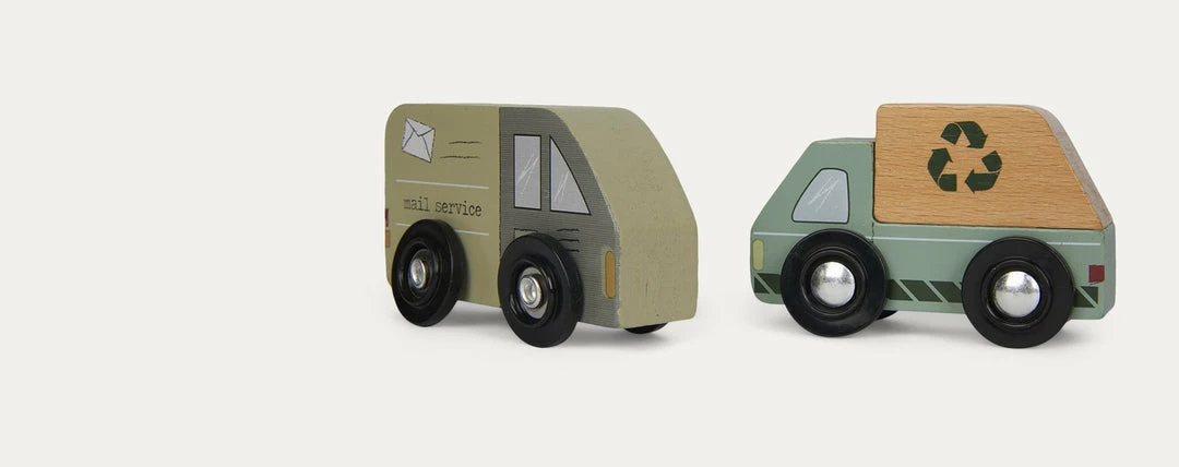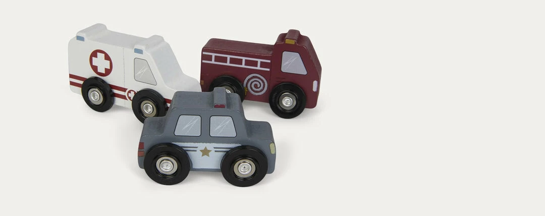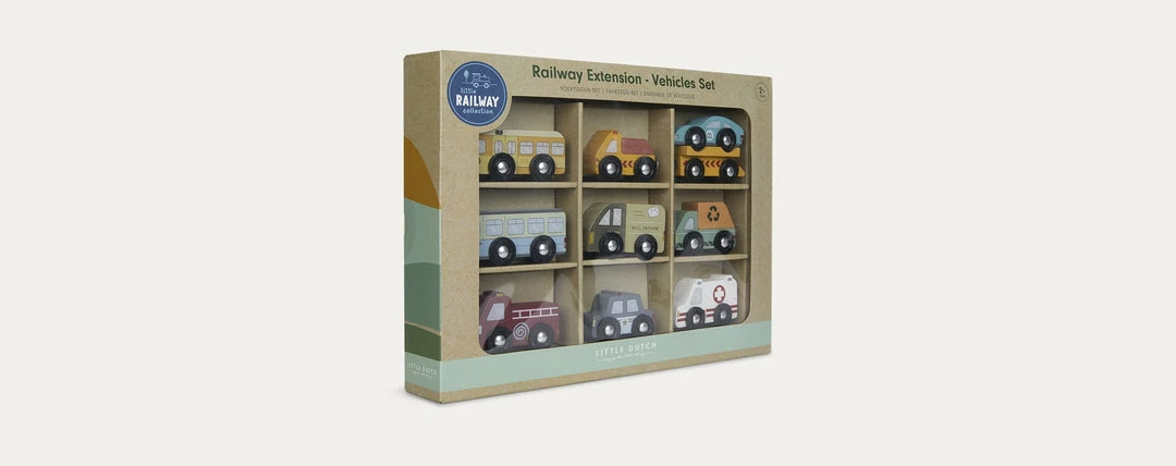 These wooden service and emergency vehicles are designed to be used in combination with the Little Dutch wooden railway train set. The tyres are compatible with the rails, allowing the vehicles to drive around town and be of assistance where they’re needed. Complete the vehicles with the railway train XXL set and additional extension sets for hours of fun play.