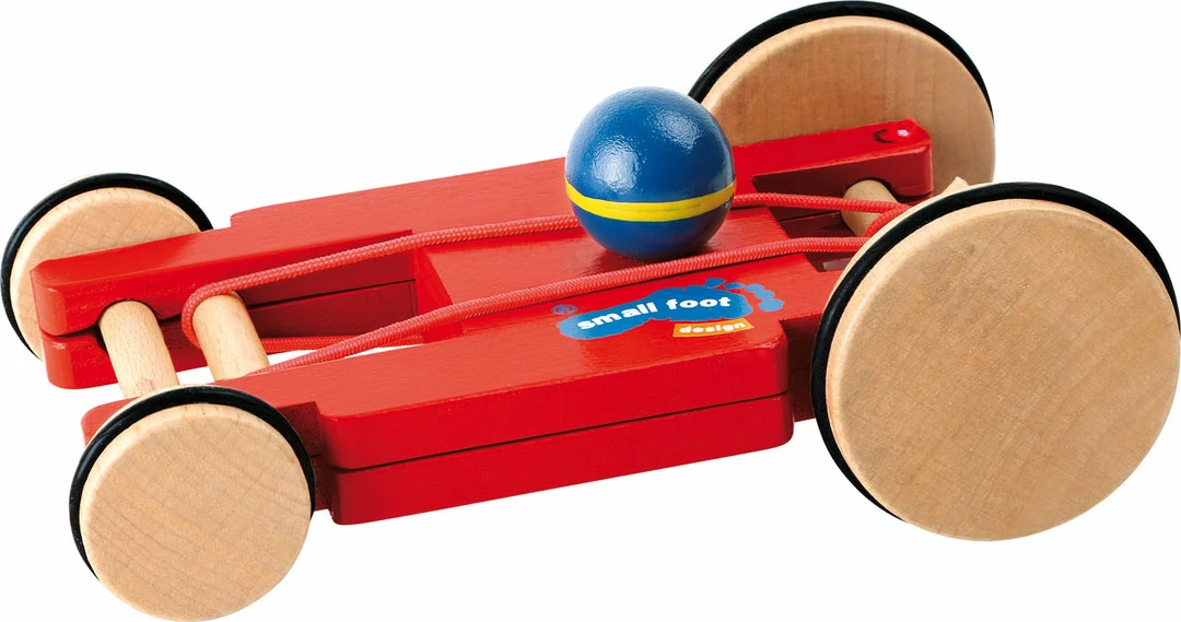 Clear the way! Here comes the robust pull-back car made of lacquered wood in a sporty design. It races quietly and with the required grip through the children’s room via four wooden tyres with rubber profiles. The rubber band and stable pull-back mechanism on the rear wheels provides the speed. When driven backwards, the car “charges” itself up and becomes unstoppable when you let go.