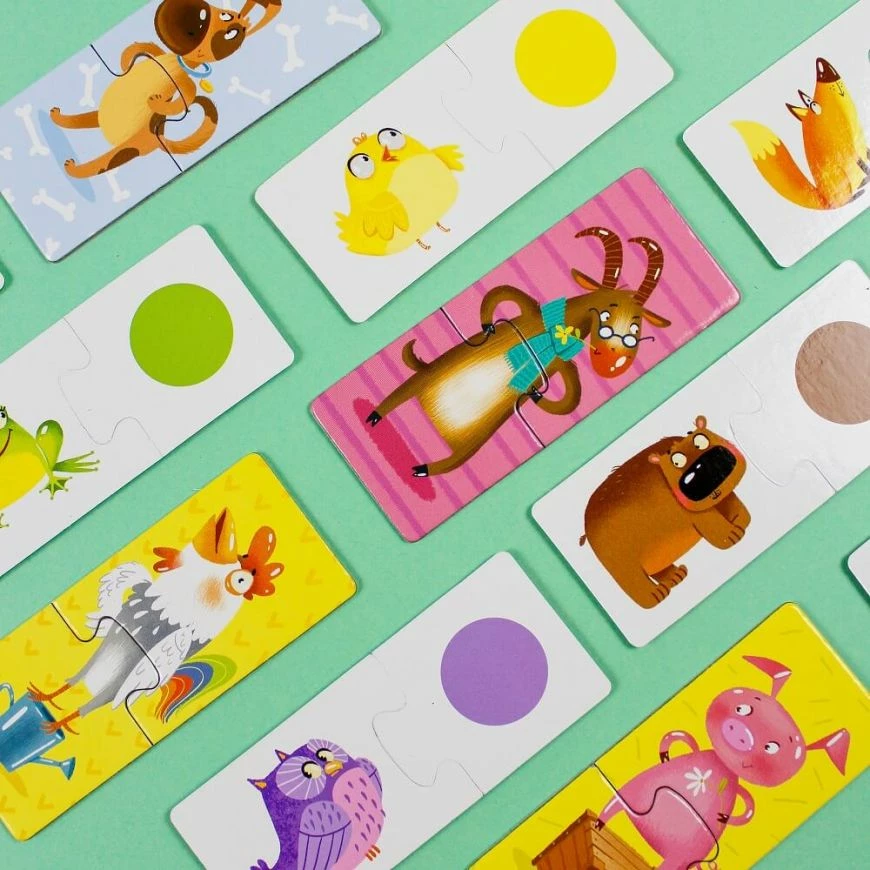 “Colored animals” is a two-sided puzzle game. On one side of the puzzle are halves of animals, on the other – the animal and its main colour.