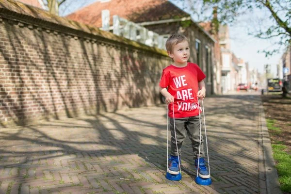 With these funny and colourful walking bobbins, you have to cross the finish line without falling. Practise your balancing step by step!