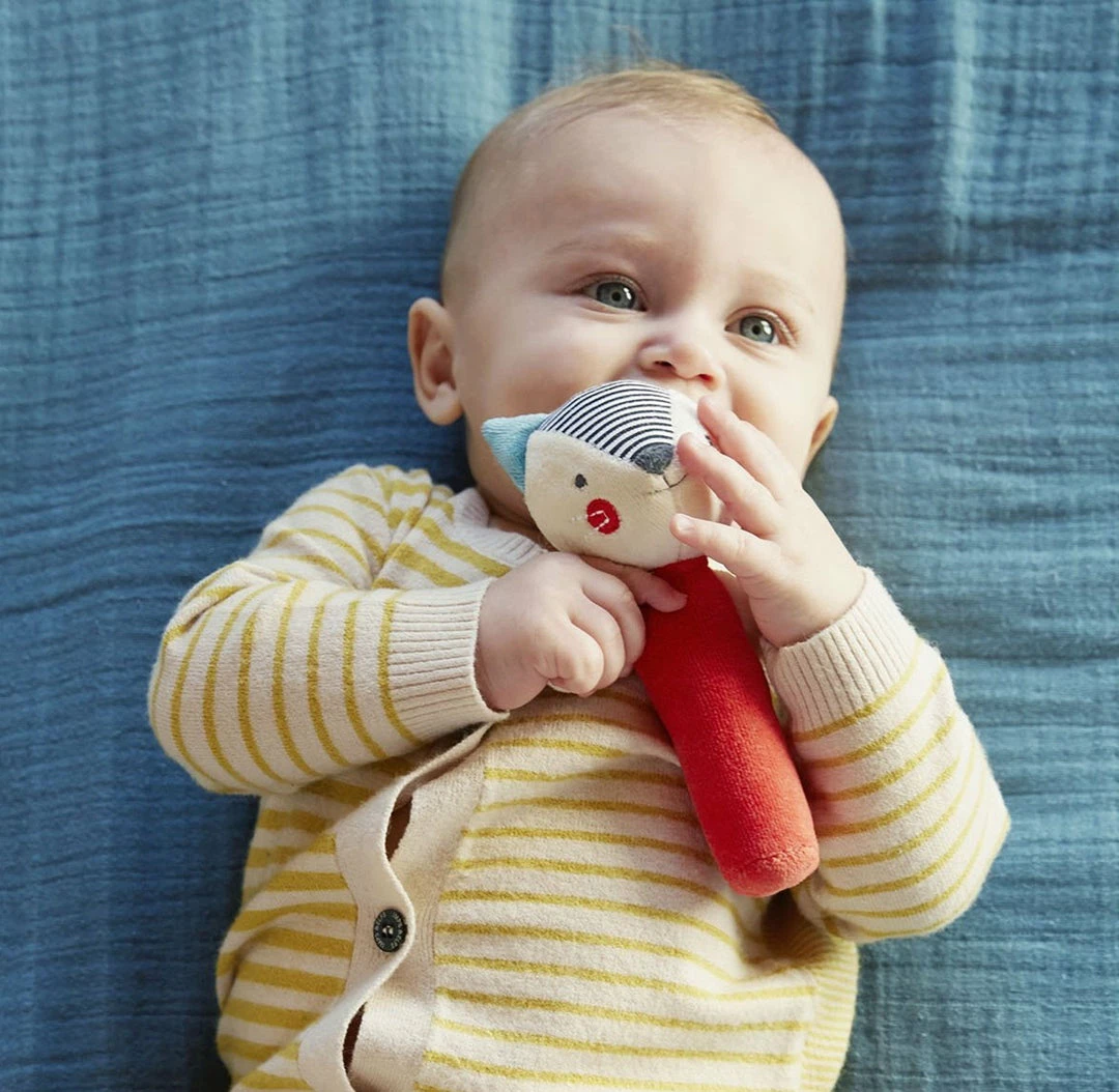 Perfect for everyday play and on-the-go fun, meet our handmade, soft, organic cotton squeaker bear, made with super soft fabric and perfect for tiny hands to grasp and hold.