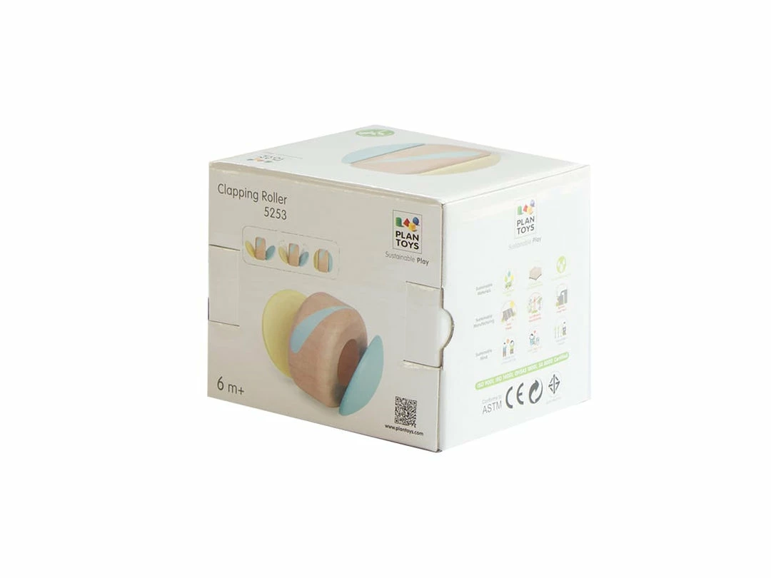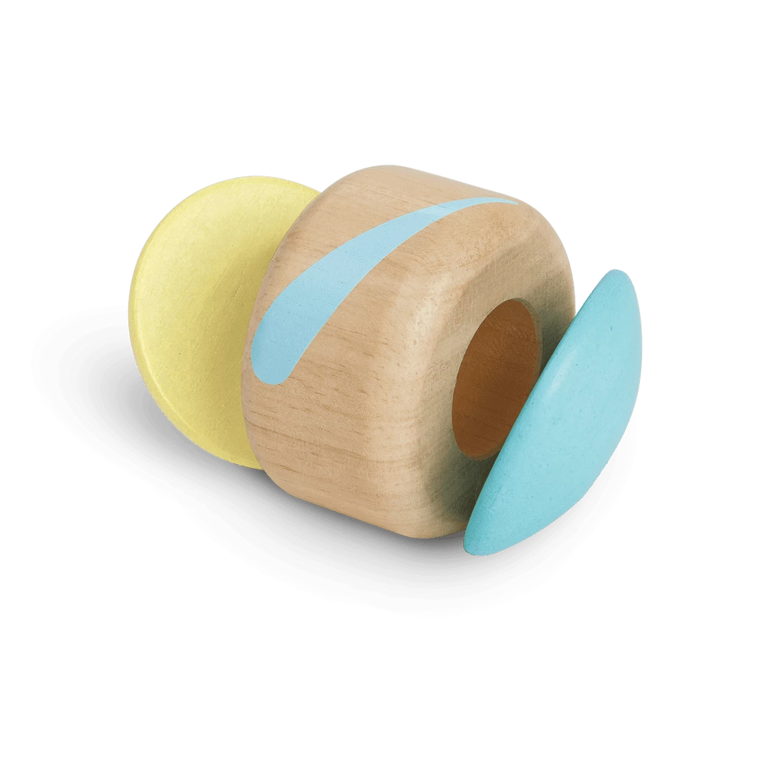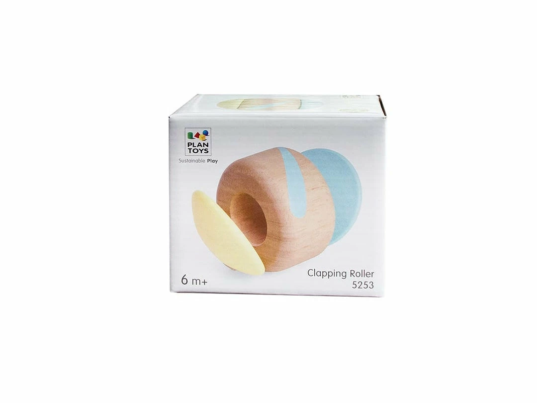This simple toy creates a soft clapping sound when rolled.