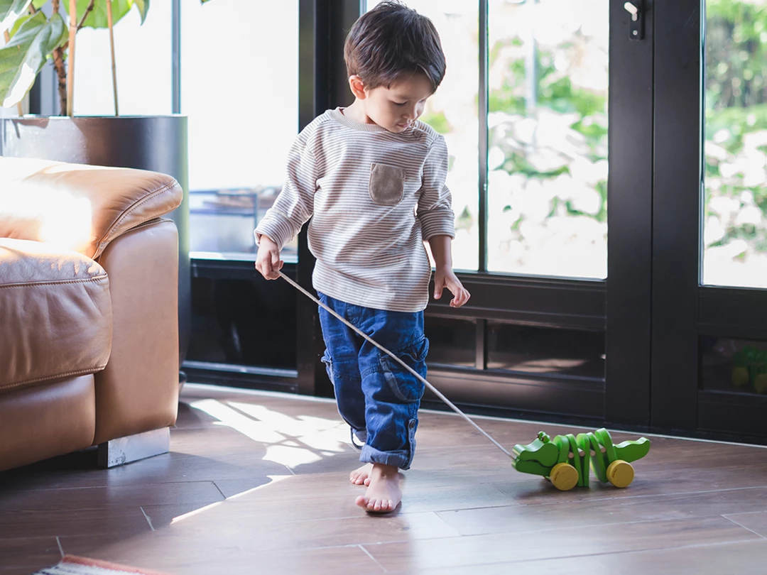 The fantastically popular dancing alligator from Plan Toys. It feels so perfect to have this little chap clacking around! This friendly alligator is made from “Plan Wood”, a super eco material utilising the roots of rubber trees, a waste material that would otherwise be burned.