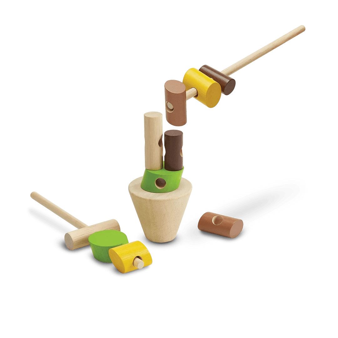 This is a strategic fun game which helps develop fine motor skills. The set consists of 10 blocks with different shapes, 2 sticks and 1 base. The player starts playing by using a hand to stack a log without making it fall. For an additional challenge, the player has to add the logs into the stick then hold the stick in one hand and stack a log on the base one by one. The player that can stack a log without making it fall is the winner. Ideal for 1-2 players.