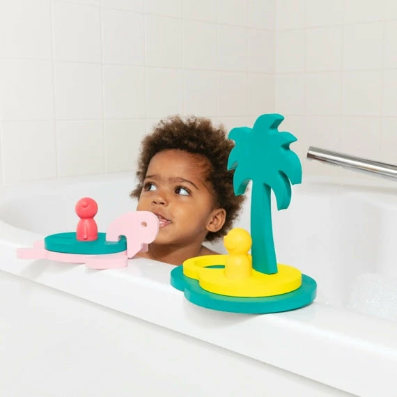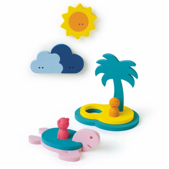 Assembling the various shapes helps improve children’s fine motor skills and simulates their creativity and imagination. All the shapes are made of soft foam, so they stay afloat. This set also contains 2 finger puppets made from sustainable plastic.