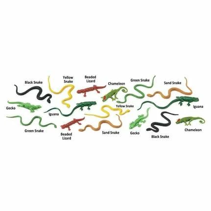 - This Toob of creepy crawlies contains 16 reptiles of different shapes, colours, sizes, and species, including snakes, beaded lizards, iguanas, and chameleons. With 2 figurines of each reptile, there’s no shortage of creatures to play with and study in our Reptiles Toob.