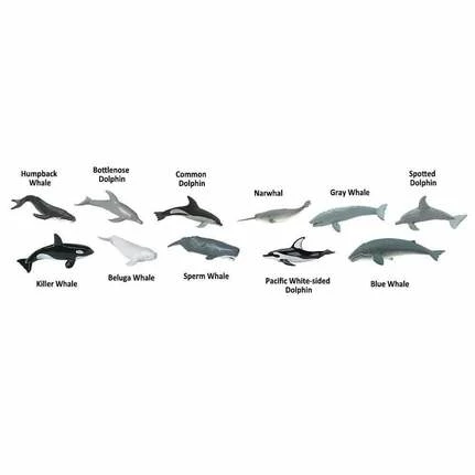 - Experience some of the world’s largest creatures in the palm of your hand! Bundled in this Toob is a blue, beluga, grey, killer, sperm, and humpback whale, a bottlenose, common, spotted, and pacific white sided dolphin, and last but not least, a narwhal!