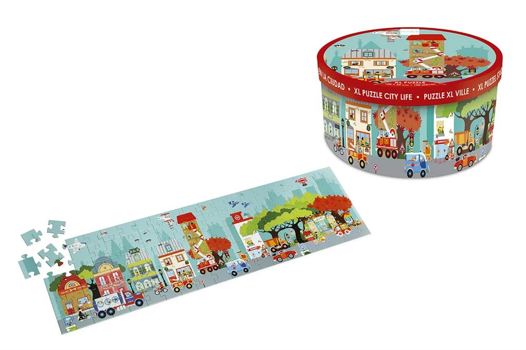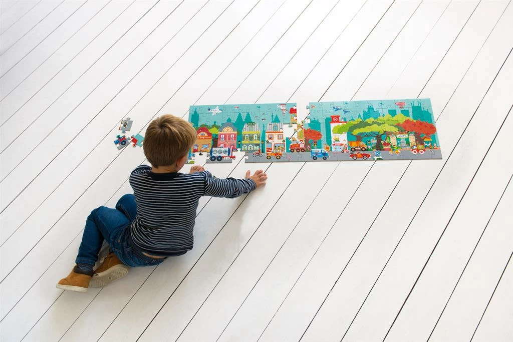 Fit together all hundred puzzle pieces one by one and discover the lively wonders of city life with this remarkably detailed floor puzzle from Scratch! Have you managed to complete the puzzle? Then it’s time to explore the city by moped, car or on foot and meet all your familiar Scratch friends. This giant puzzle measuring 120 by 32 cm can be pieced together on the floor or table and is suitable for puzzle fans aged 5 and up. And now… it’s puzzle time!