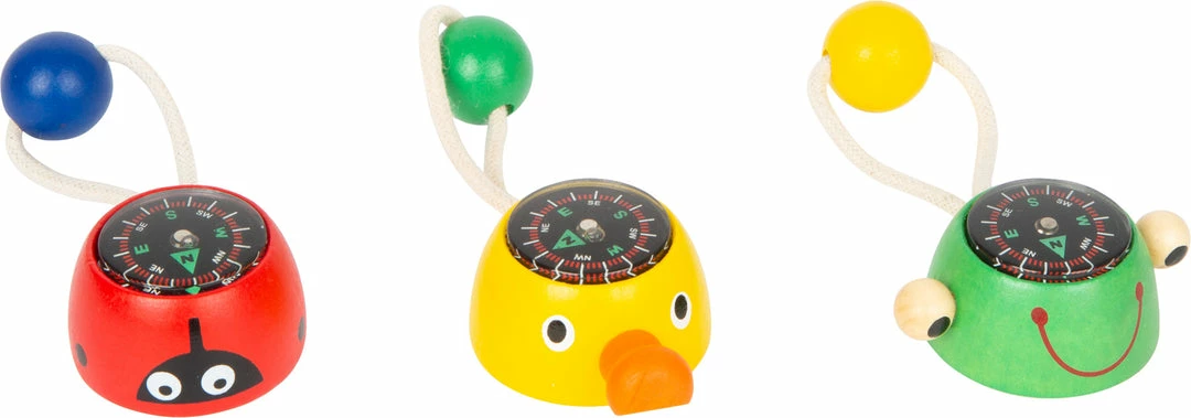 With these compasses, young explorers can learn the cardinal directions and how to orient themselves in nature. Each compass in the form of a cute animal figurine can be attached to a key chain or backpack thanks to the cord so that children can always have the duck, the ladybird, or the frog with them.