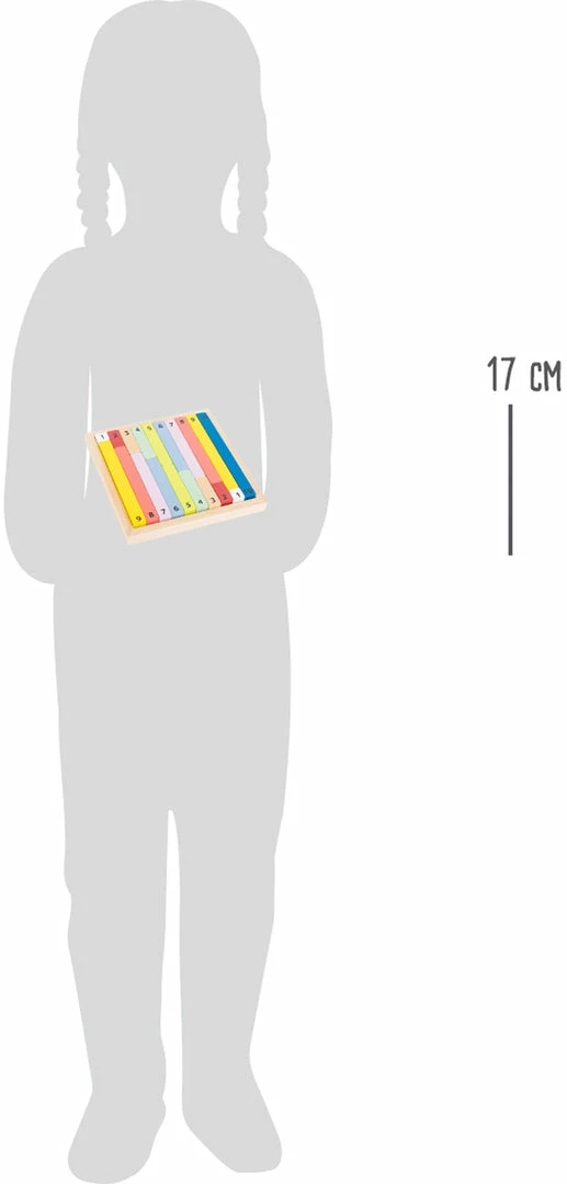 Learning can be fun! These 19 counting sticks and the practical frame are made of FSC® 100%-certified wood and are ideal maths companions for school-age children. They quickly and clearly deliver understanding of numbers. Is ten a larger number than three? The length of the sticks are there to help with orientation. When put in the right order, all counting sticks fit neatly inside the frame.