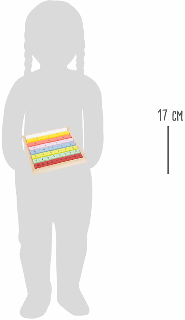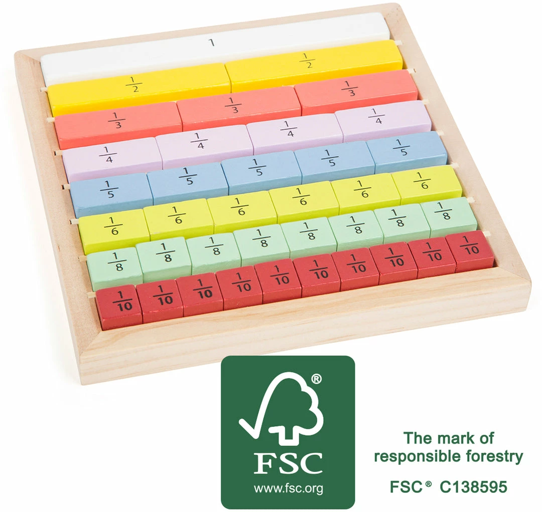 Cheerful counting fun! This fun game made of FSC® 100%-certified wood encourages children to practice fractions. It motivates children to discover the world of numbers. ¼ =?