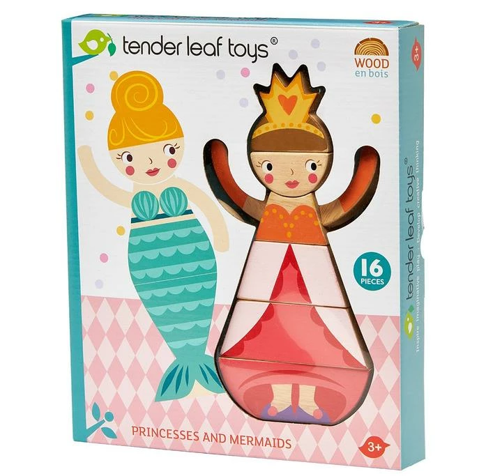 Are you a princess or a mermaid, or a fashion conscious girl? Double sided and printed onto solid rubber wood, in pretty contemporary colours, these 15 pieces will make up 4 combinations of differently dressed girls! We have even added a lovely printed drawstring bag.