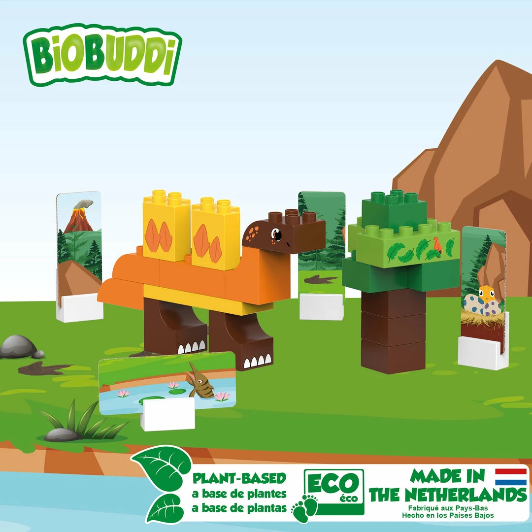 Stegosaurus is one of the most famous Dinosaurs. Go back to prehistoric times with the new tough play set from BiOBUDDi. By building and playing with Stegosaurus, children develop motor and creative skills, as well as cognitive skills. Stimulate your child’s imagination and creativity with the BiOBUDDi toy blocks. This building set consists of 33 parts, 21 building blocks, 6 slot blocks, and 7 expression cards and textbook