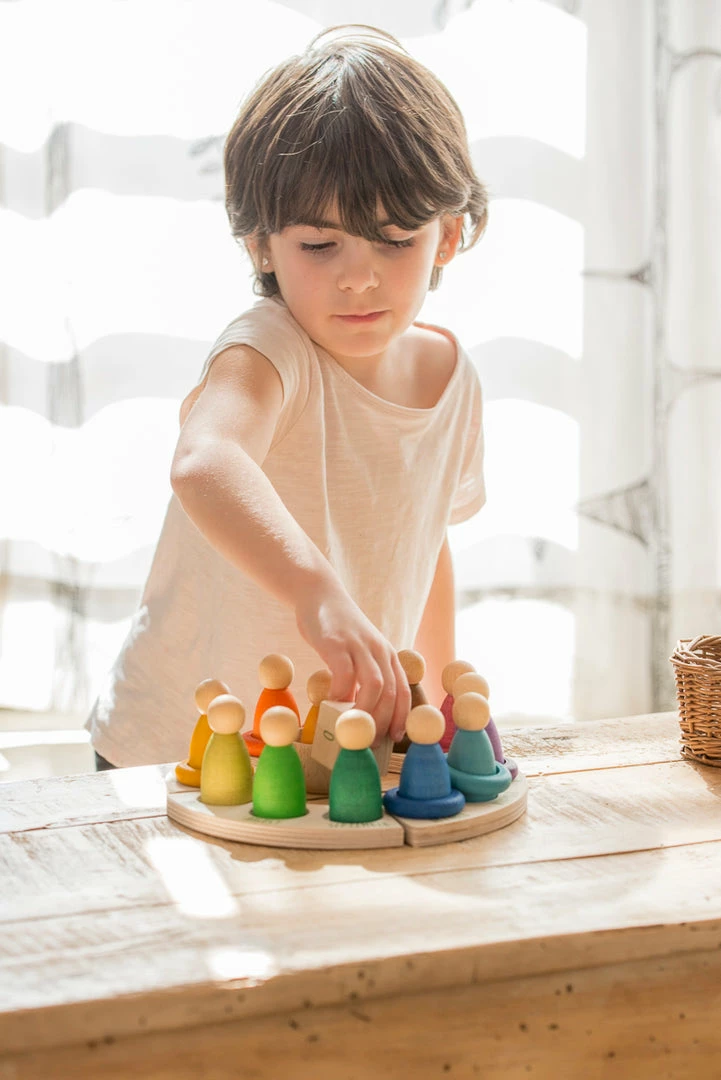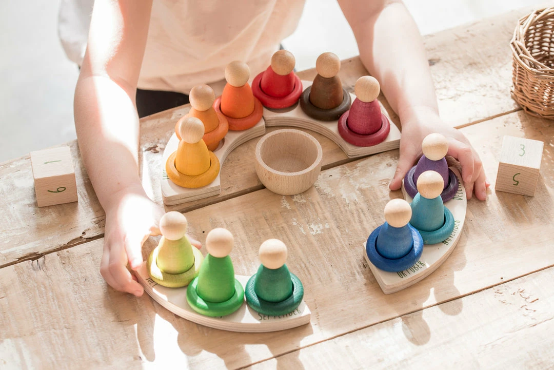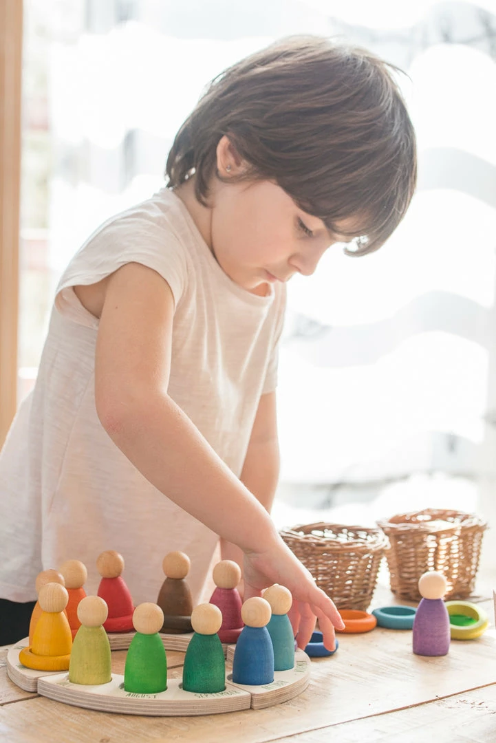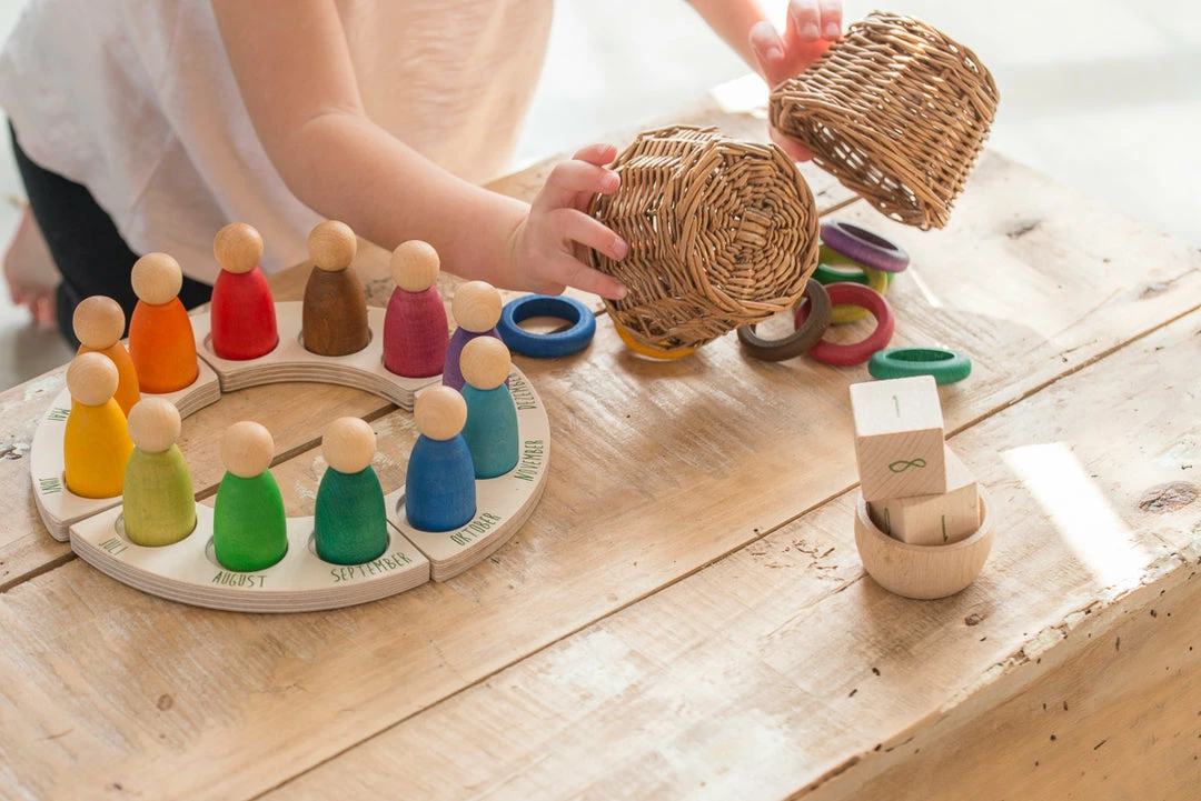 12 rings that allow marking the current month with the colour determined according to the Waldorf pedagogy.
