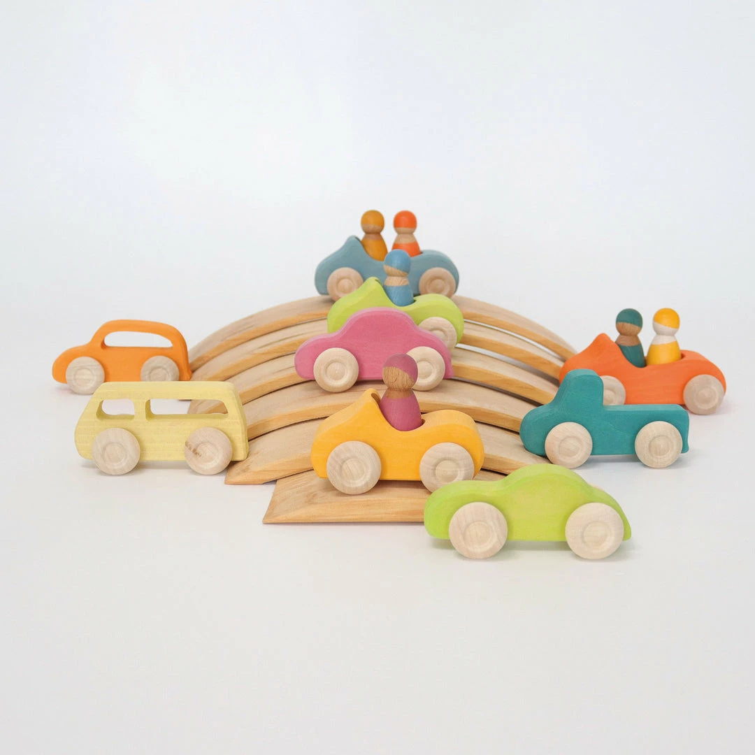 Our captivatingly simple and off-road wooden convertible car can take 2 Rainbow Friends on a jaunt into the countryside. Afterward, the vehicles do not have to go into the car wash, but can simply be cleaned with a damp cloth.
