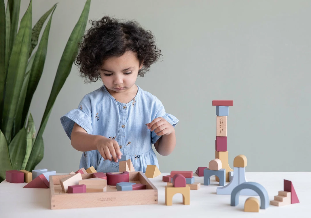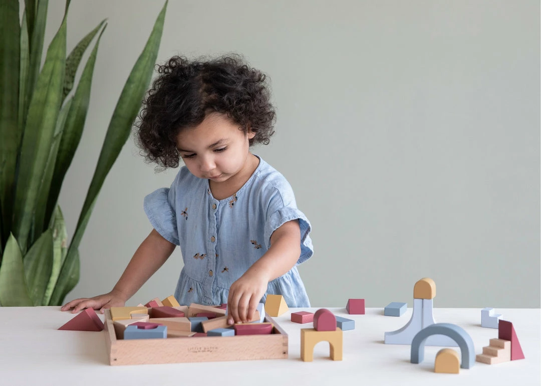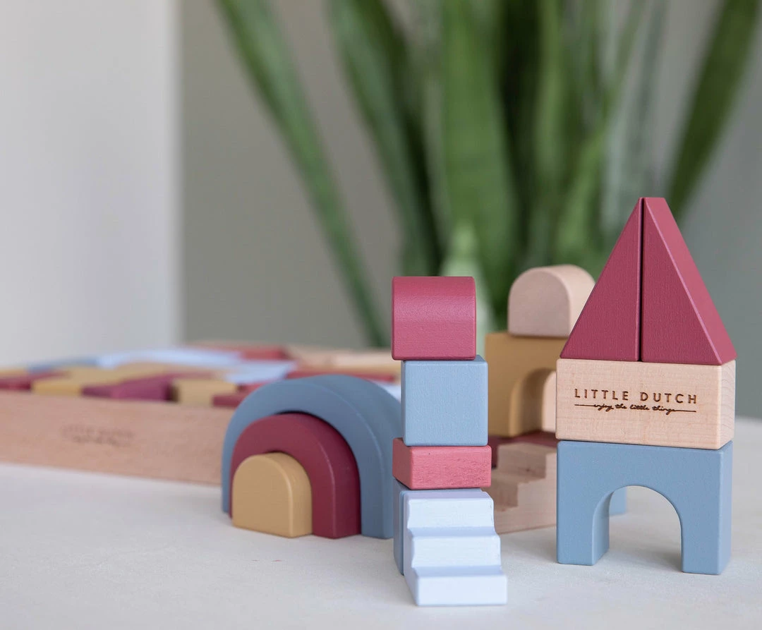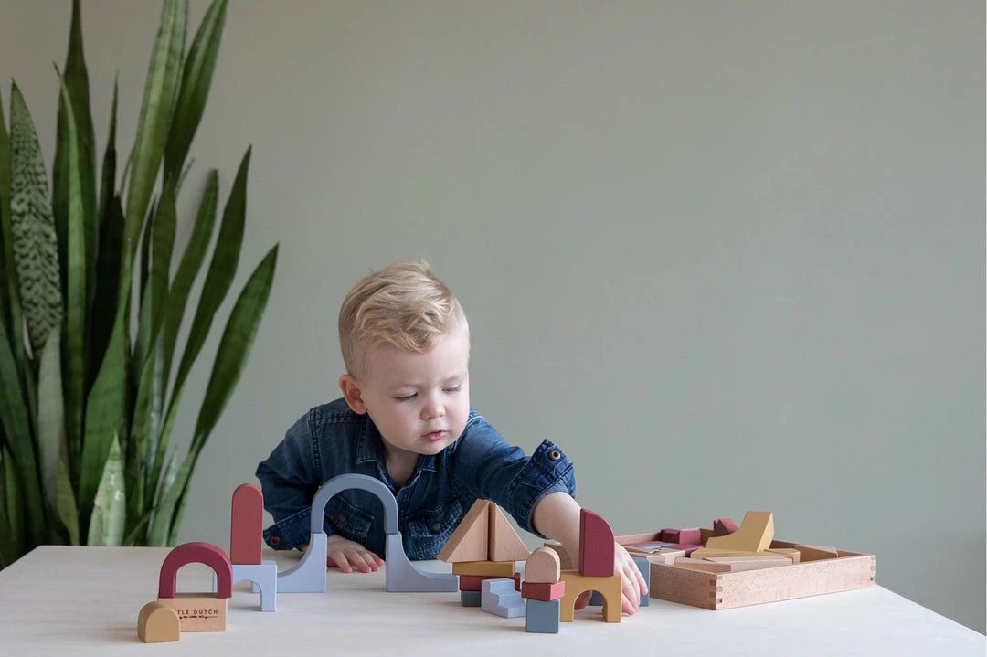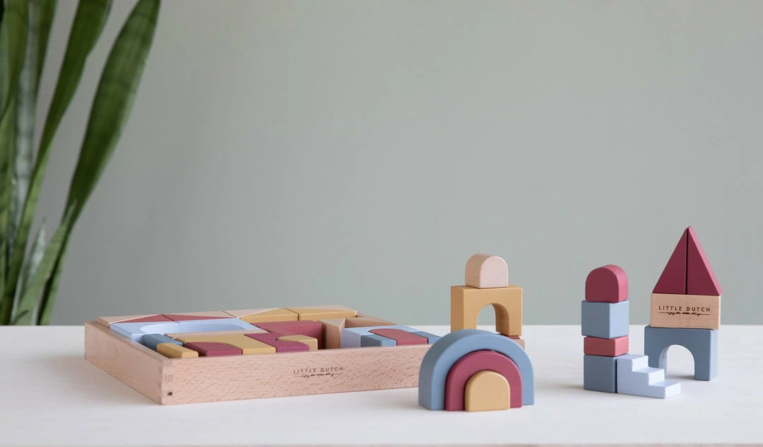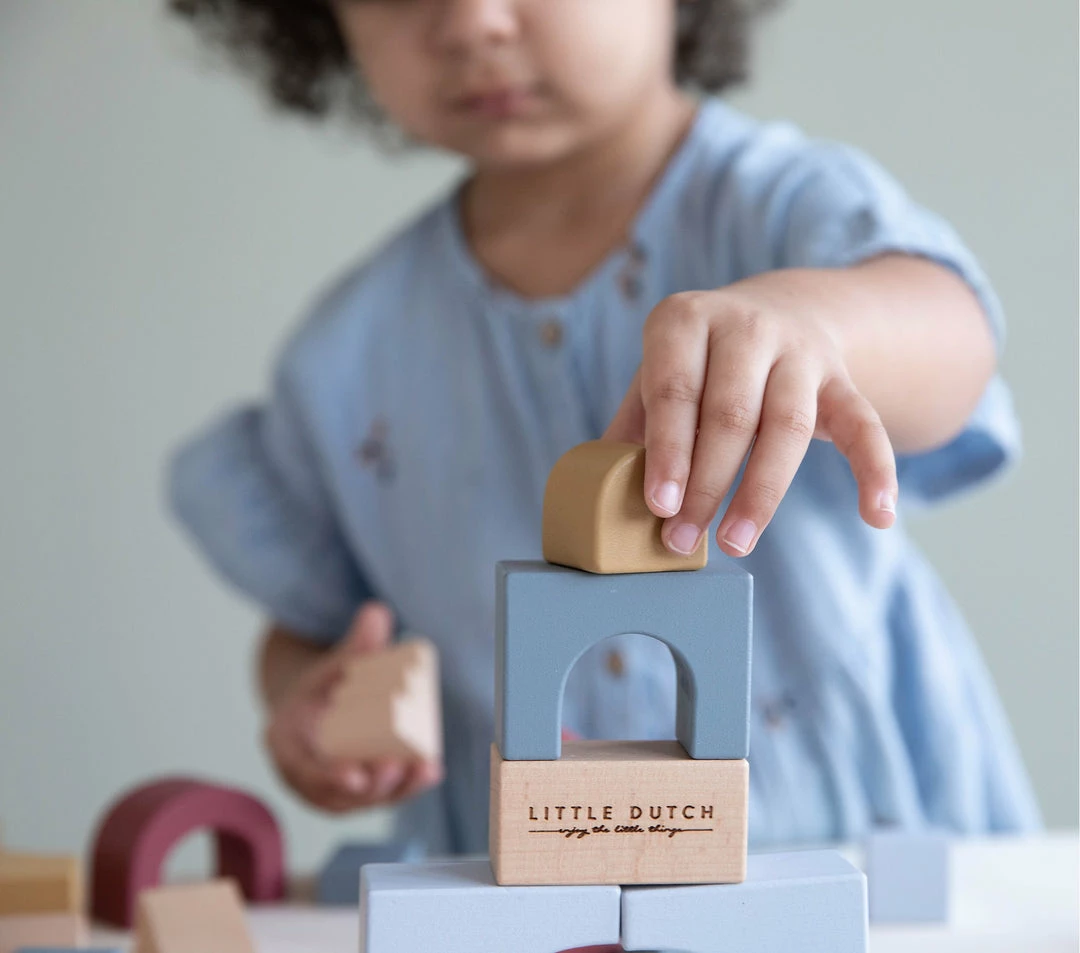 Create the most wonderful figures and buildings with these nostalgic, yet modern building blocks from Little Dutch’s Pure & Nature Collection. The blocks have different geometrical shapes and are stored in their own open wooden box. With these coloured blocks, children can use their imagination to invent whatever comes to their mind. This promotes hand-eye coordination and fine motor skills. The set encourages children’s play development and guarantees hours of building fun.