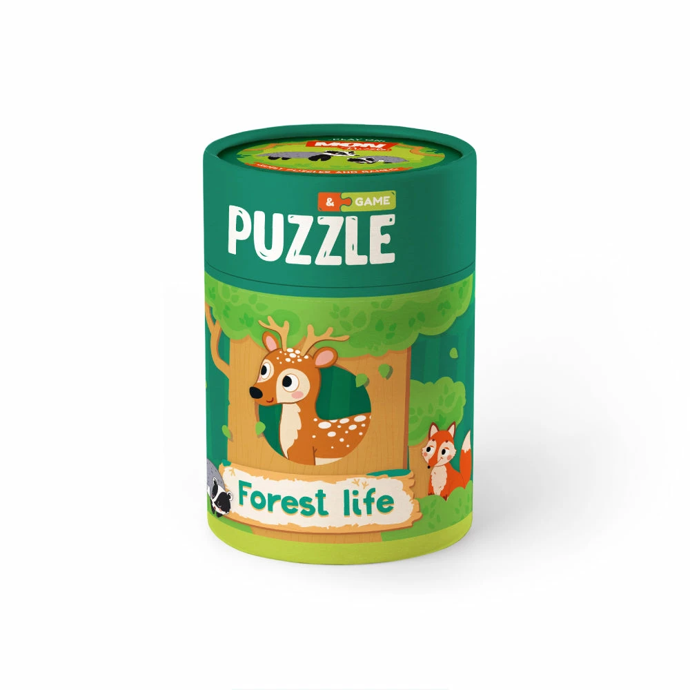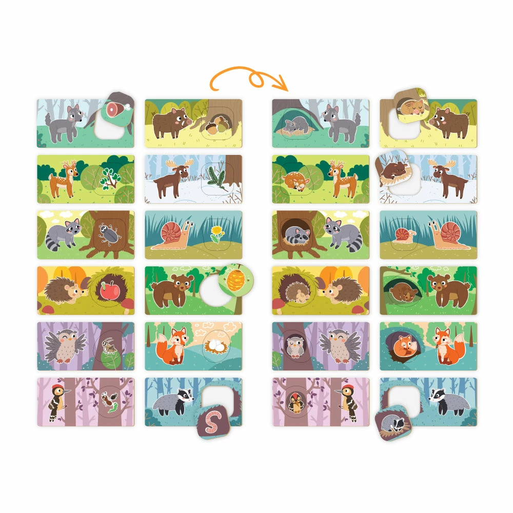 “Zoology for kids. Life in the forest “is a two-sided puzzle game. On one side of the puzzle depicts mothers-animals with cubs, on the other – animals and their favorite treats.