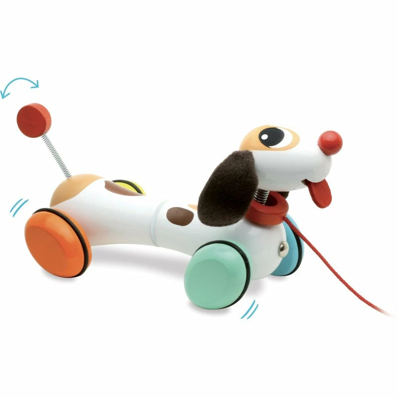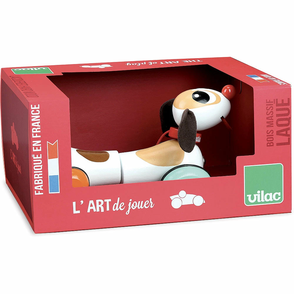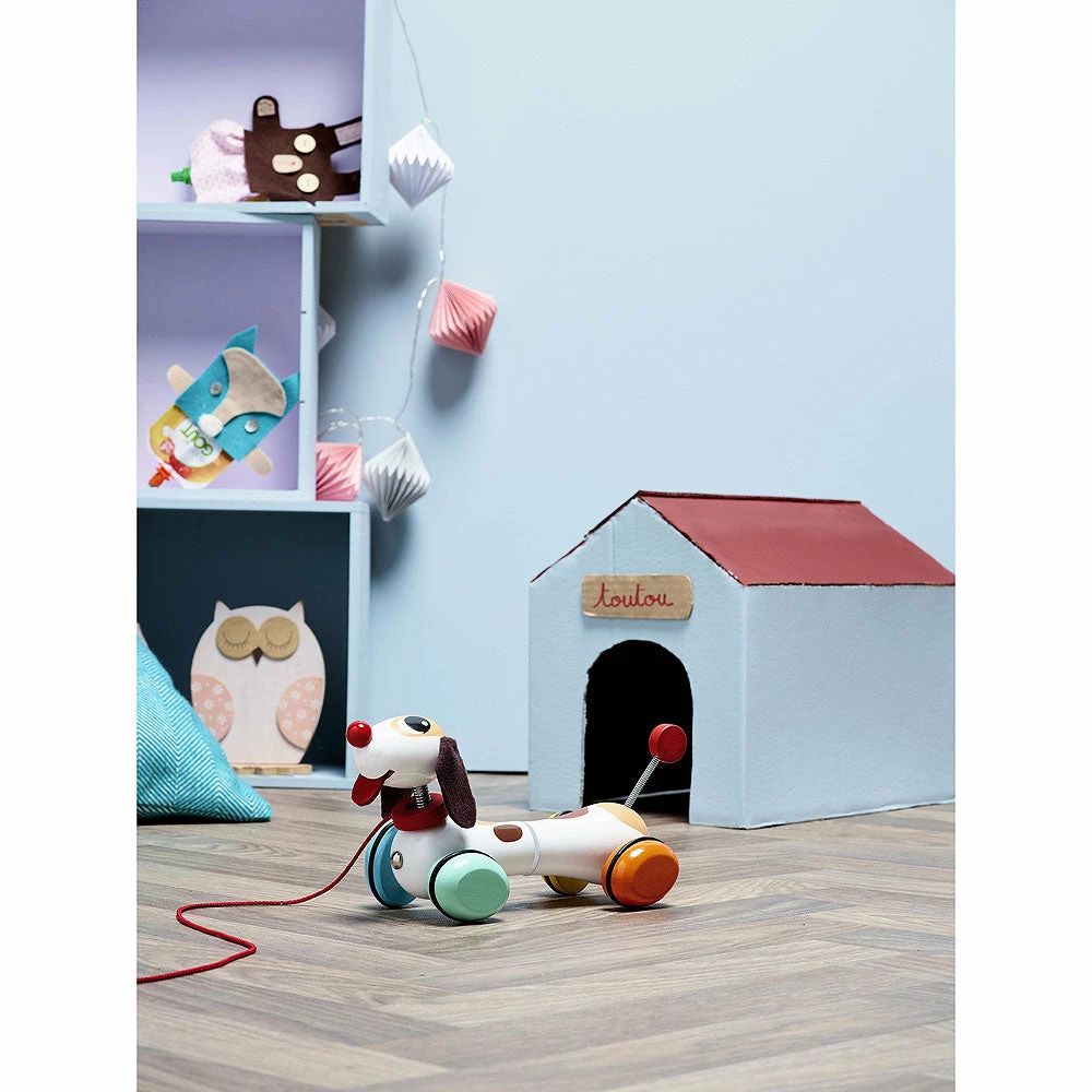 Pull-along dog Toutou from Vilac is a nice pull figure made of wood. When you pull the dog forward he waggles and his tail sways happily. Your child will take many steps in the house to see this comic toy dog move. This product is made of wood and has four wheels with rubber piping and a drawstring.