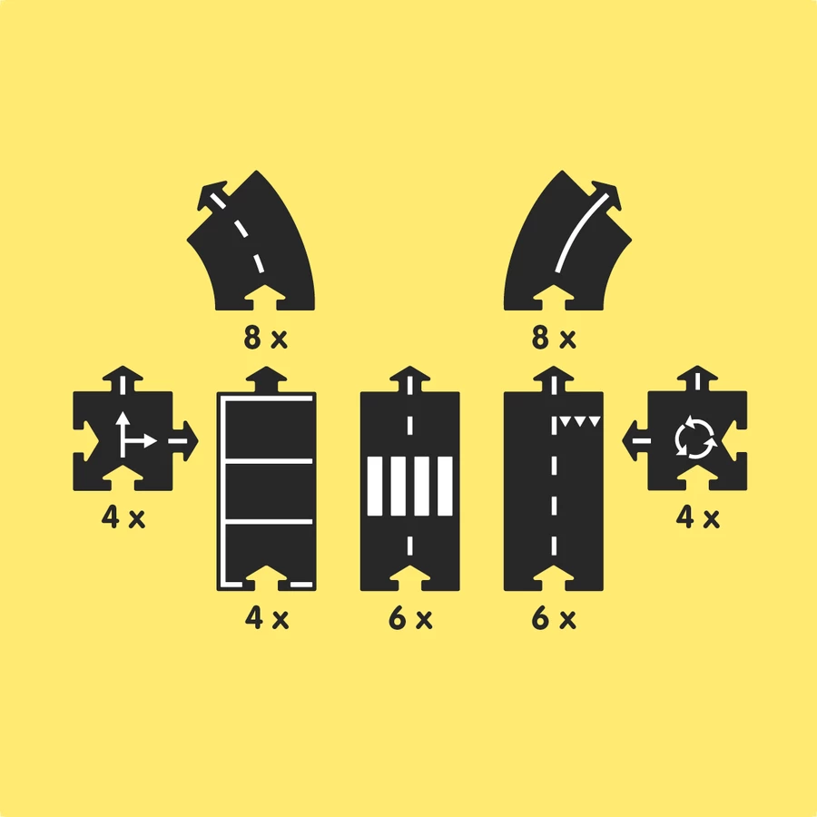 King of Road- If you want to be King of the Road, this is your set! It contains no less than 40 parts for maximum fun for everyone. This set is big and is highly recommended for kids that really love to play with cars but also for use at schools and daycare centres.
