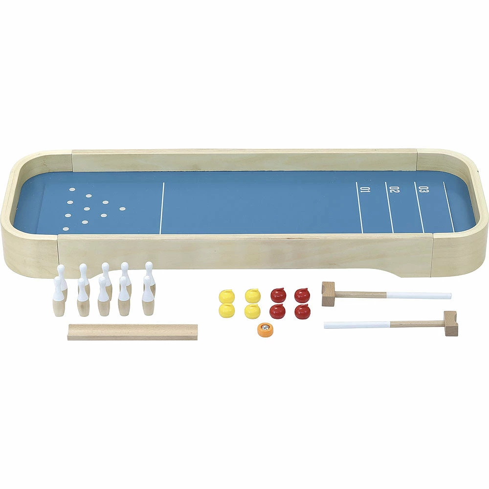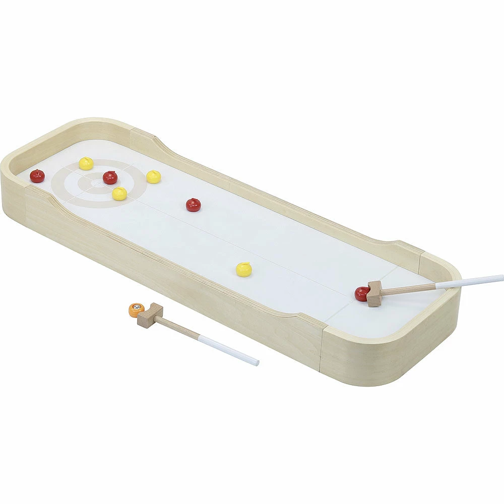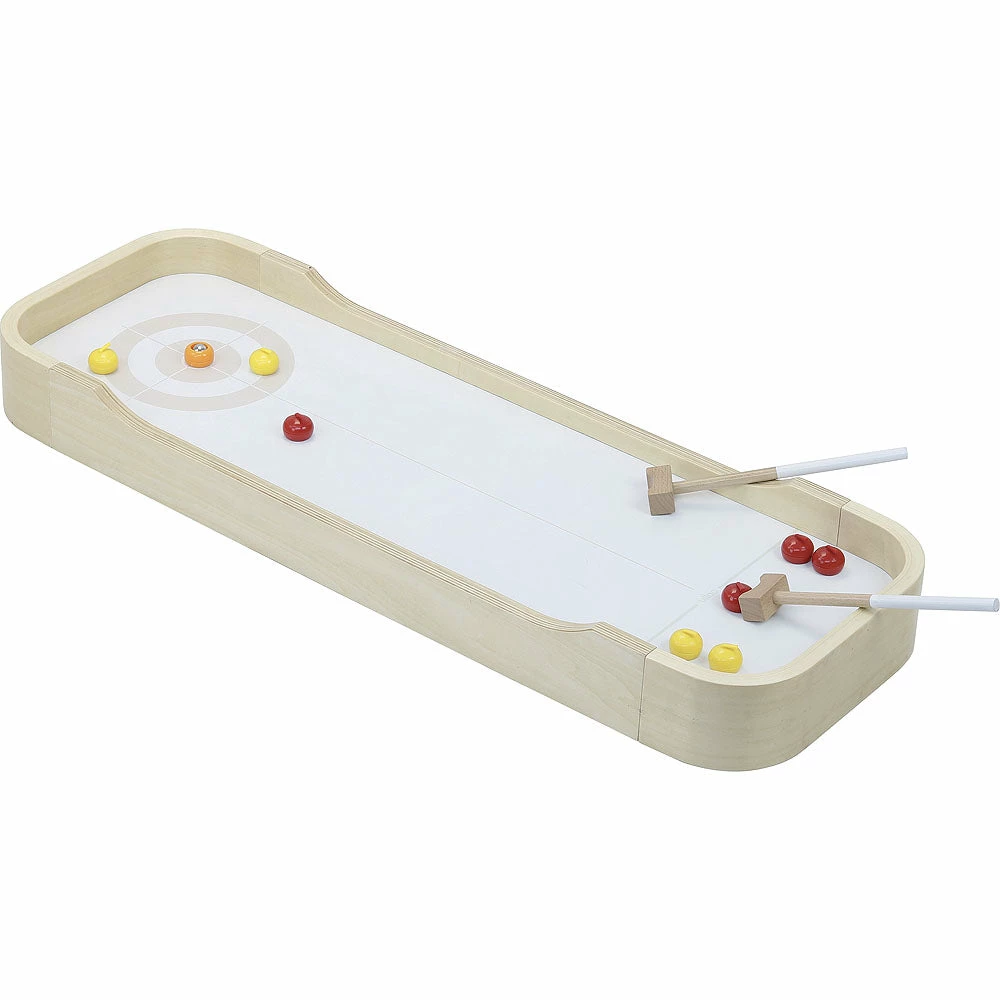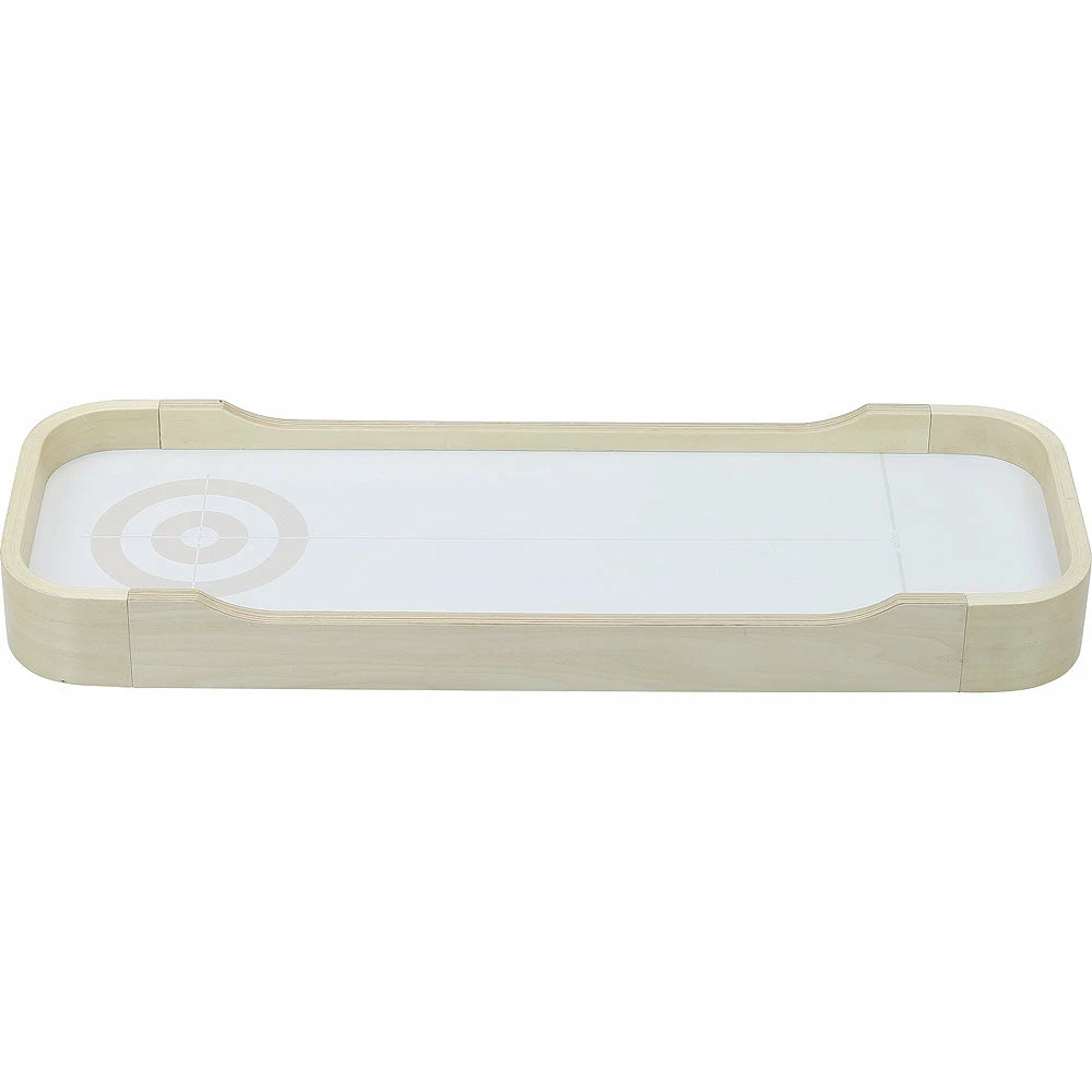 A reversible 2 in 1 wooden and plastic board game with a classic curling and pétanque curling game on one side and a bowling and shuffleboard game on the other. For frenzied parties for young and old alike, a game with a contemporary look that will find its place everywhere.