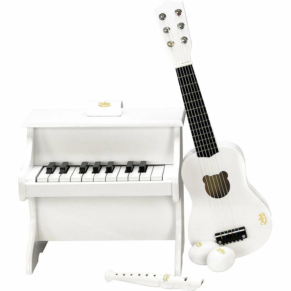 An attractive guitar in chic white lacquered wood for amazing concerts! A toy with 6 nylon strings to teach your child how to imitate real guitarists.